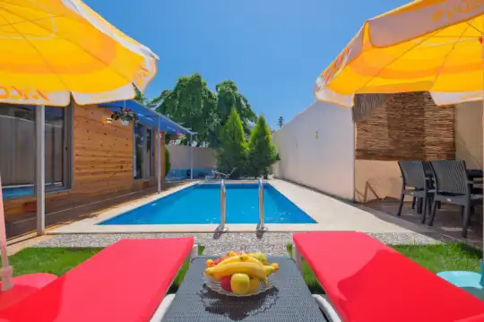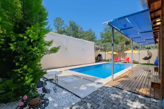 Asmalı Villa, Fethiye Karagedik mevkiinde konumlanan şirin bahçeli havuzu oldukça korunaklı villamızdır. Müstakil yüzme havuzu dışarıya karşı oldukça korunaklı olduğu için tatilde gözlerden uzak olmak isteyen misafirlerimiz rahat edeceklerdir.