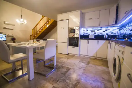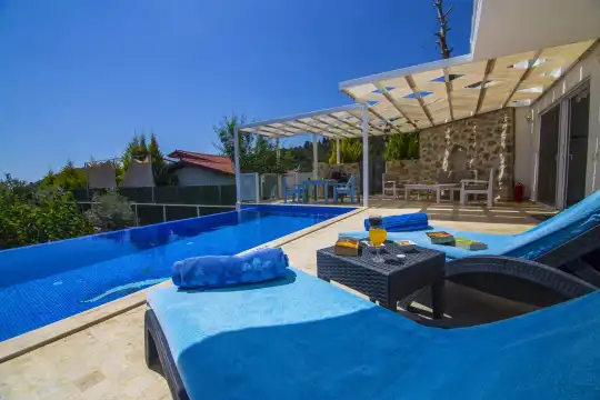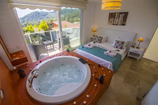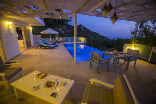 Villamız Kaş/Kalkan tatil beldesinin en sakin lokasyonlarından biri olan İslamlar mevkiinde bulunmaktadır. Villa tatili son bölgelerde gözde haline gelmiştir, merkez çevre ormanlar içerisinde yer almakta olup, merkeze araç ile 5 dakikada ulaşım sağlanmakta ve muhteşem manzarası ile misafirlerine lüks bir tatil imkanı sağlamaktadır. Villa Koybal, 2 kişilik kapasiteye sahip villada 1 yatak odası yer alıyor. Villanın birer banyosu ve jakuzisi mevcut. Açık mutfağı ve kendine ait bahçesinde bir havuzu var. Mutfağında bulaşık makinesi, buzdolabı, ankastre fırın, tost makinesi ve mutfakta ihtiyaç olan hemen hemen bütün gereçler bulunuyor. Barbekü, masa, sandalyeler, şezlonglar ve şemsiyeler bahçe keyfini sınırsız yaşamanıza imkan tanıyor. Salonunda oturma grubu, televizyon, eşyalar bulunurken, tüm odalar için ayrı klima imkanı var.