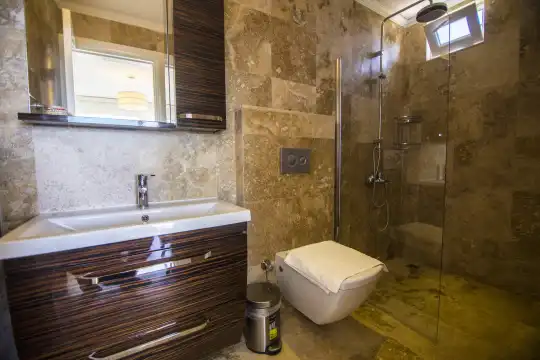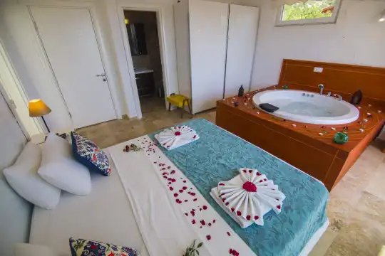 NOT: Dış havuz ısıtmalı sistem mevcuttur. Isıtmalı havuz olarak kullanmak isteyen misafirlerimiz konaklamadan en az 3 gün önce bildirmelilerdir. Konaklanacak gün boyunca hesaplanan havuz ısıtma ücreti günlük 2.000 TLdir.
