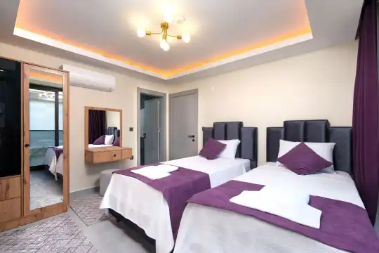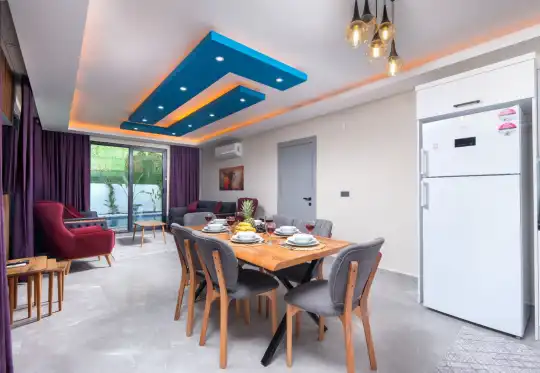 Fethiye’nin doğayla iç içe Patlangıç bölgesinde yer alan bu özel villa, 3 yatak odası ve 6 kişilik konaklama kapasitesiyle kalabalık aileler ve arkadaş grupları için ideal bir tatil imkânı sunmaktadır. Salonda bulunan konforlu koltuklar sayesinde kapasite 8 kişiye kadar çıkarılabilmektedir.
