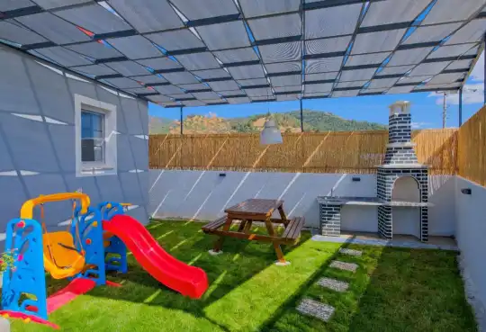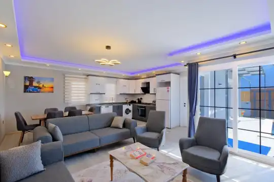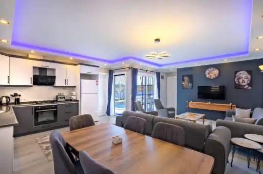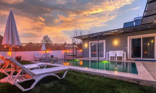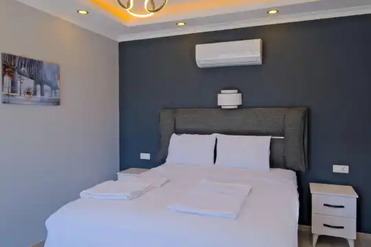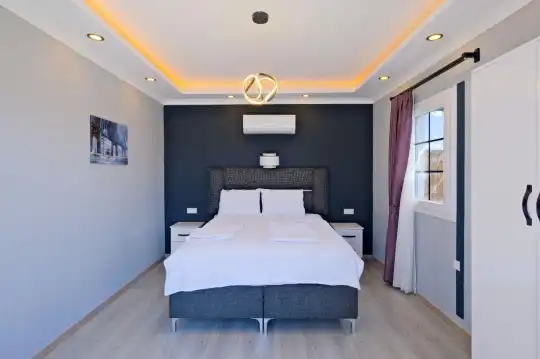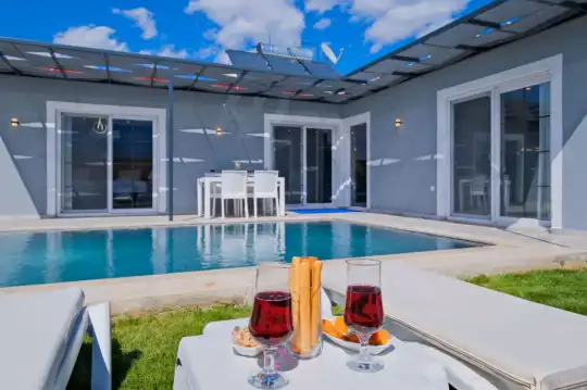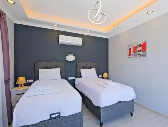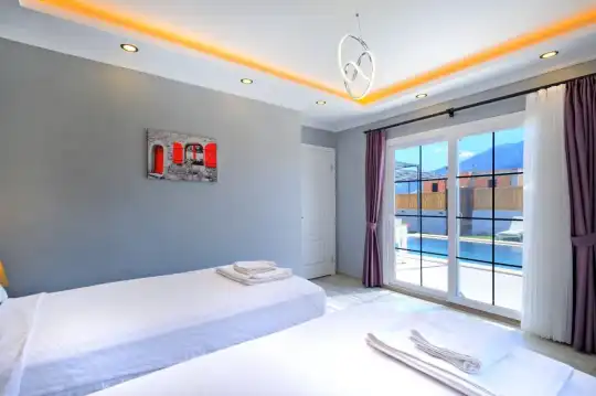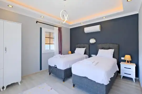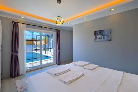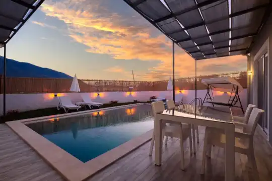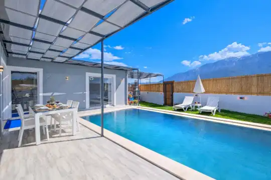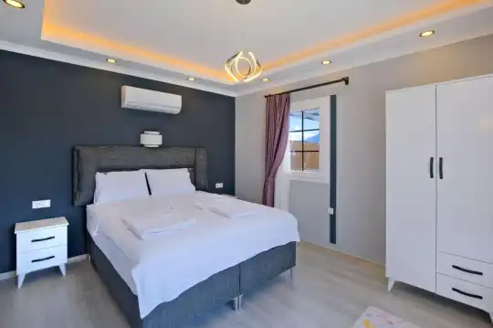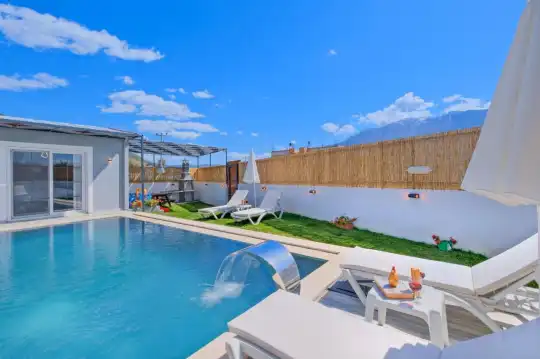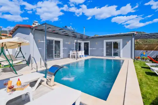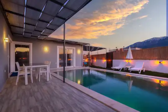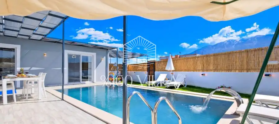 Fethiye’de bulunan 2 yatak odalı Villamız, Villa Altın 2, 4 kişi konaklamaya sahip olup, özel havuzlu ve deniz manzaralıdır. Fethiye’nin Yeni popüler villa kiralama bölgesi olan Karaçulha’da bulunan villamızın etrafı zeytin ağaçları ile çevrilidir. Odaları ve salonu gayet modern ve keyifle döşenmiş olan villamızın, Manzarası eşsizdir. Korunaklı havuz ve bahçe alanı ile dış gözlerden uzak tatilini geçirmek isteyenler ve mutaassıp aileler için oldukça ideal kiralık villa seçenekleri arasında yer almaktadır .