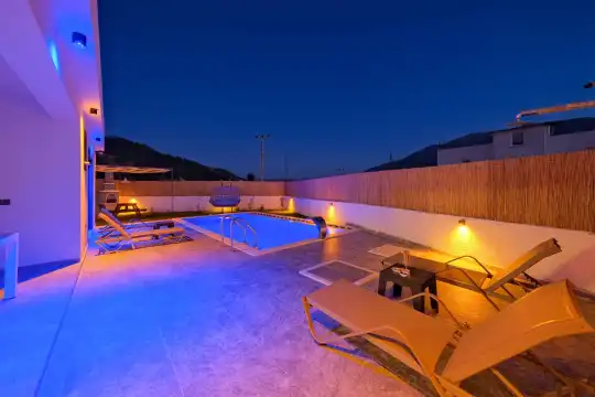 Villa Altın 3 Fethiye Karaçulha mevkiinde konumlanan şirin bahçeli havuzu korunaklı villamızdır. Müstakil yüzme havuzu dışarıya karşı oldukça korunaklı olduğu için tatilde gözlerden uzak olmak isteyen misafirlerimiz rahat edeceklerdir. Toplam 2 yatak odasından oluşmuş, 4 kişi konaklama kapasitesine sahiptir. Geniş aileler ve kalabalık arkadaş grupları için oldukça idealdir. Oldukça şık ve modern bir şekilde döşenmiş olan villamızda misafirlerimiz için her şey düşünülmüştür. Havuz terasında bulunan şezlonglarda güneşlenebilir, bahçe masasında muhteşem yemekler yiyebilir, salıncakta sallanıp keyifli dakikalar geçirebilirsiniz.