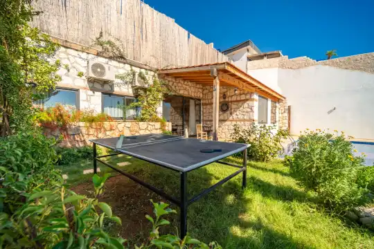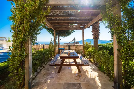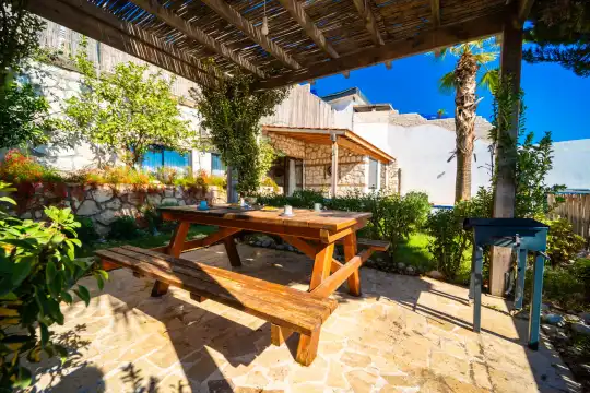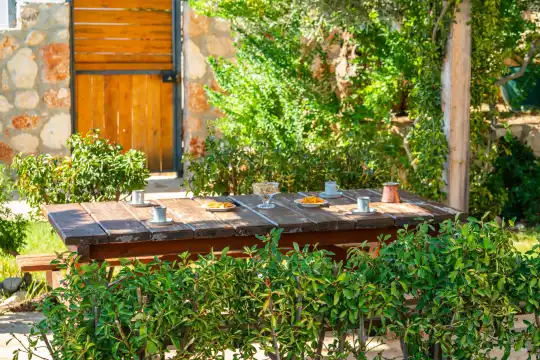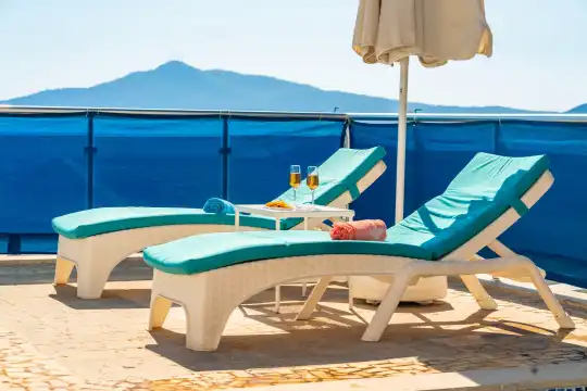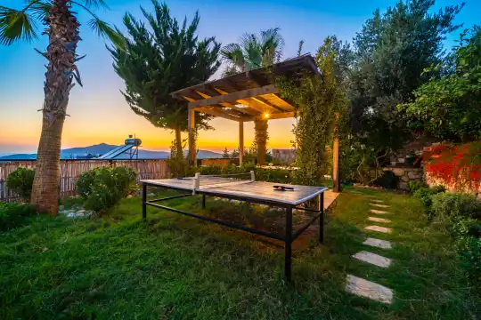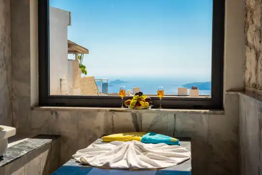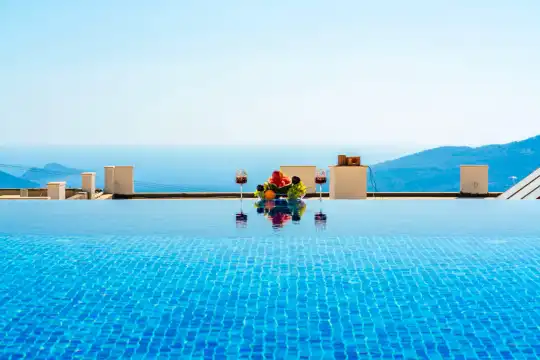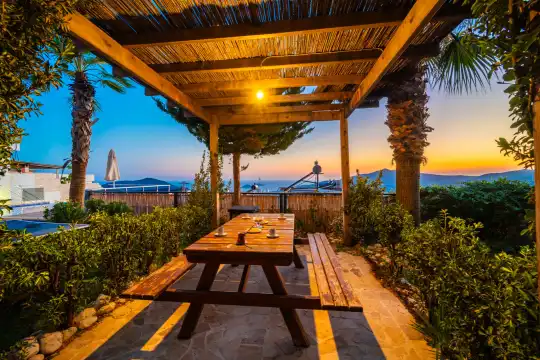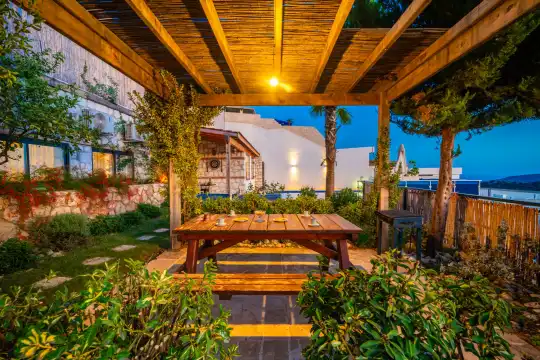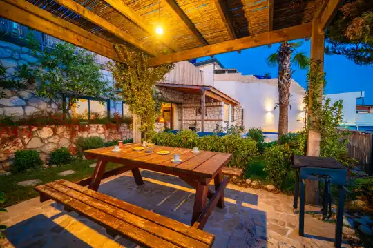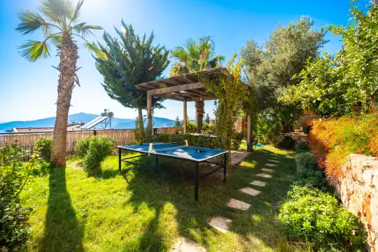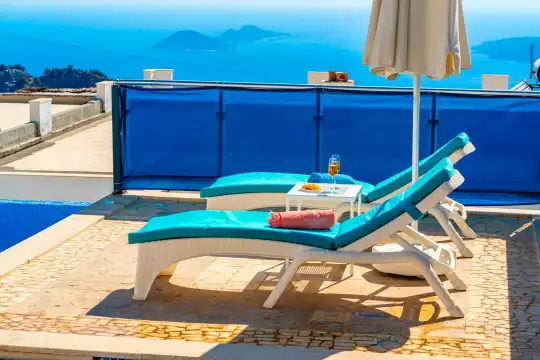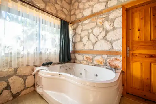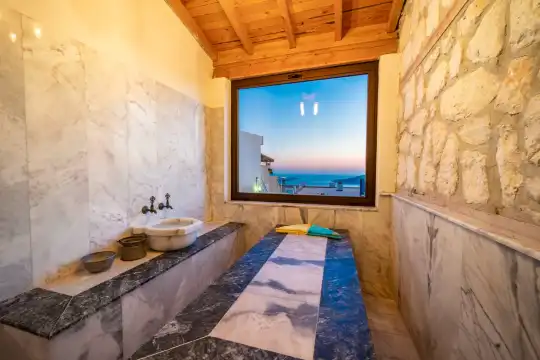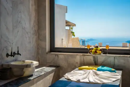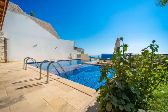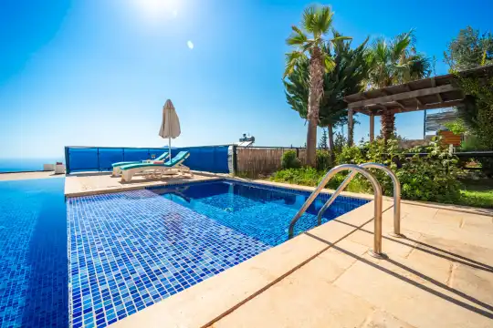 Villa Anahita, Kalkan'ın Kördere mevkiinde yer alan, 1 yatak odalı ve 2 kişilik konaklama kapasiteli balayı villasıdır. Modern ve şık taş mimarisiyle tasarlanan villamızda, konforunuz için bir süit yatak odası ve dinlenmenizi sağlayacak bir jakuzi bulunmaktadır. Ayrıca, keyifli zaman geçirebilmeniz için sauna ve Türk hamamı mevcuttur. Havuz alanında yemek masası, oturma grubu ve barbekü yer almakta olup, perdeleme sistemi sayesinde havuz alanı tamamen korunaklıdır.