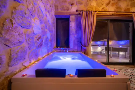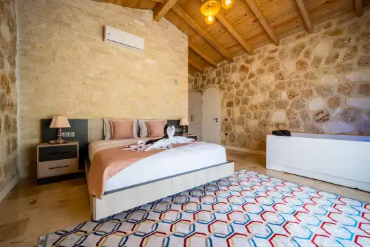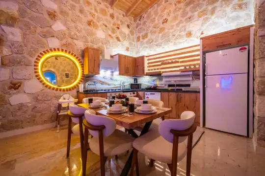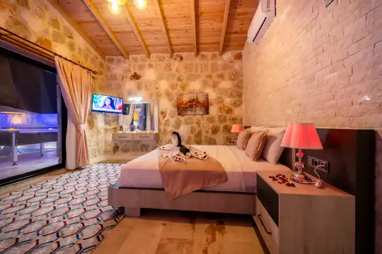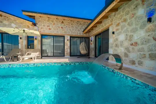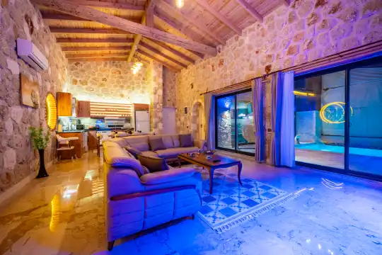 Villamız Antalya’nın en çok tercih edilen tatil bölgesi Kalkan/Akbel mevkiinde yer almaktadır. Masmavi koylara ve muhteşem adalar manzarasına hakim bir noktadadır. Doğa içerisinde, bol oksijenli tertemiz havasıyla konaklayanlarına sağlıklı ve dingin bir tatilin kapılarını aralamaktadır. Villamız muhafazakar aileler için de uygundur.