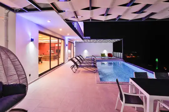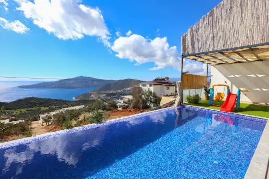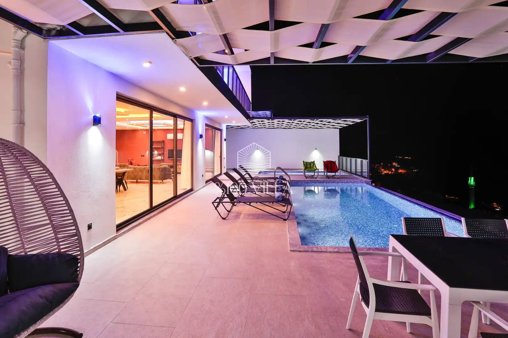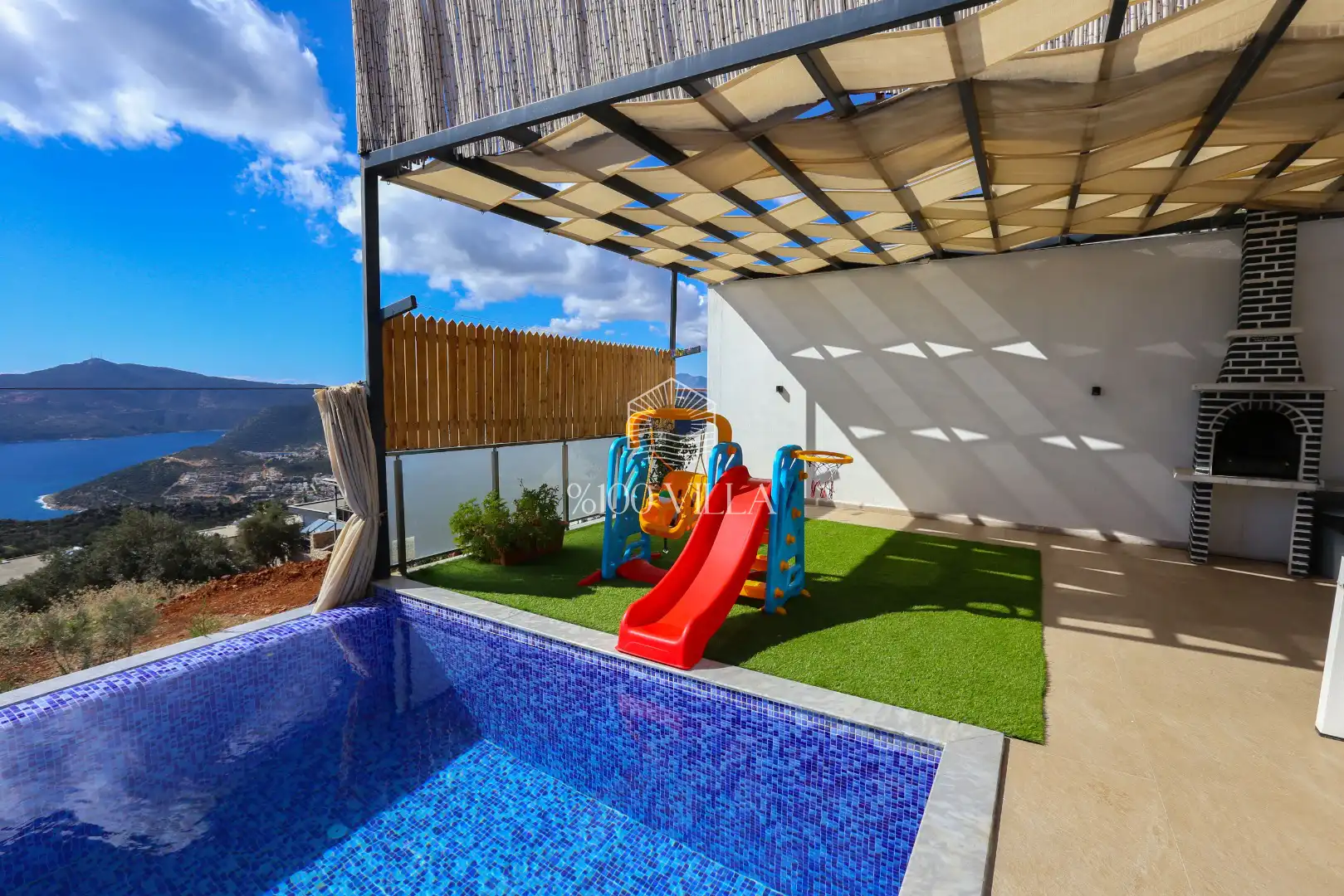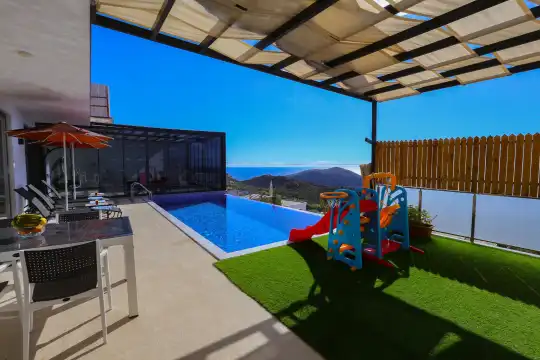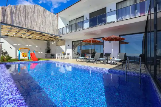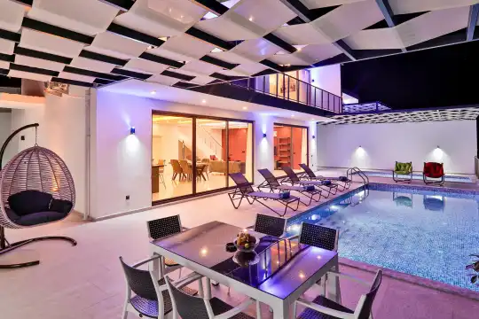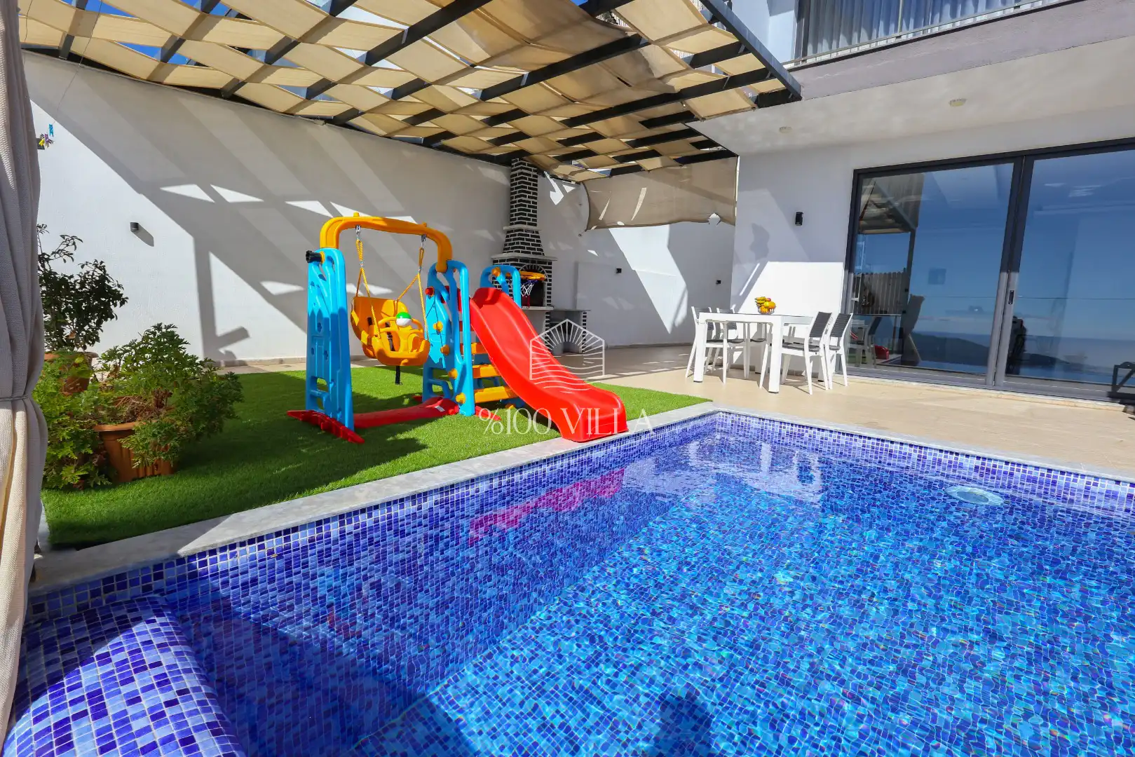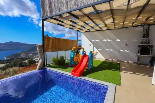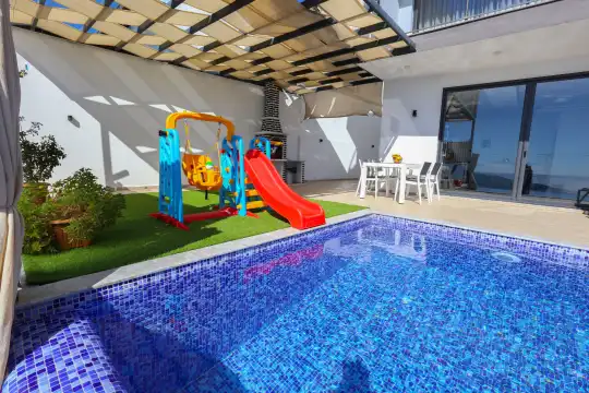 Villada bulunan çocuk havuzu ve büyük havuz, tüm aile bireylerine eşsiz bir yüzme deneyimi sunar. Havuz alanı korunaklı olarak tasarlanmıştır, bu sayede dışarıdan görülme endişesi olmadan rahatça yüzebilir ve güneşlenebilirsiniz. Yenilenen dekorasyonuyla villa, misafirlerine son derece modern ve şık bir atmosfer sunmaktadır.