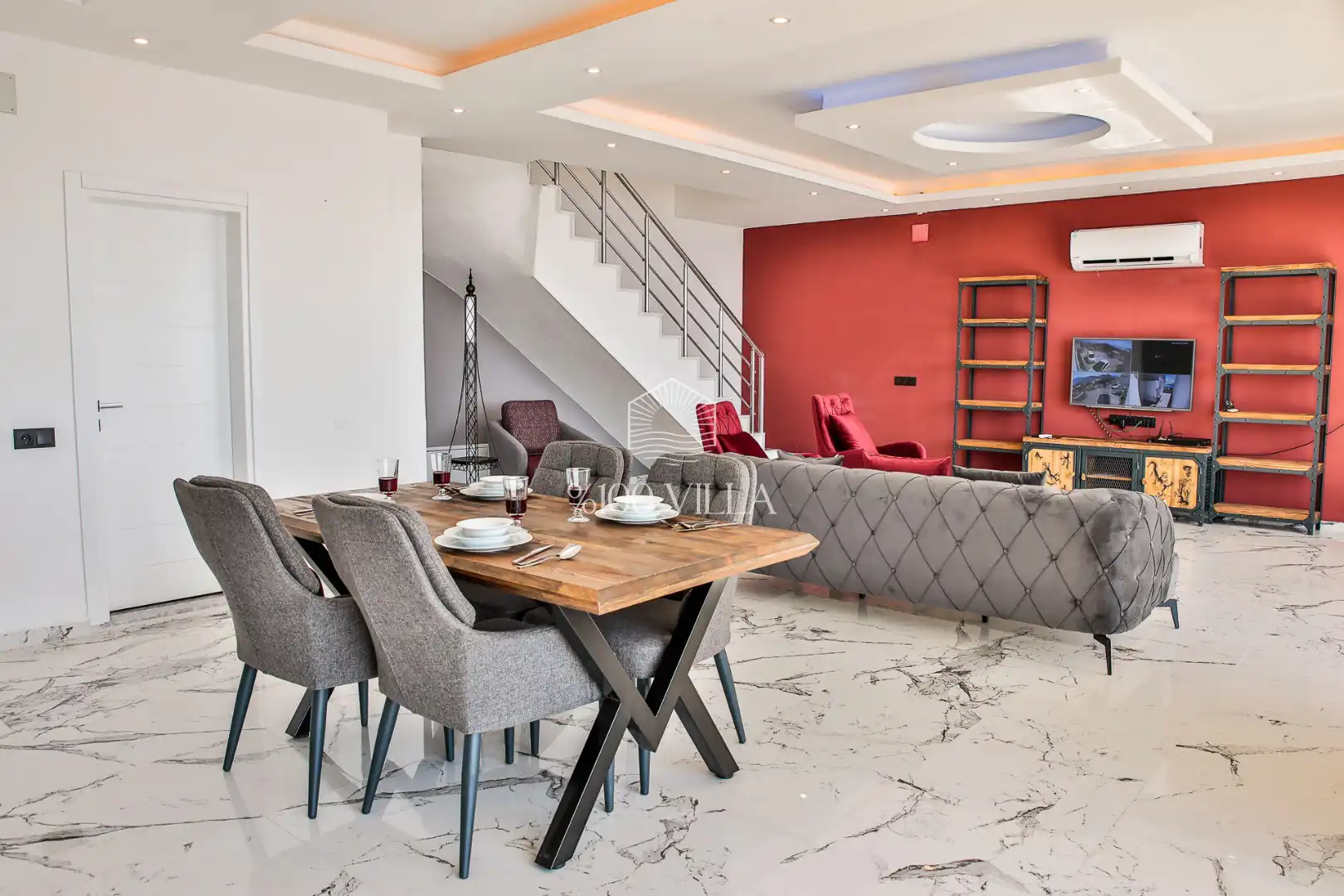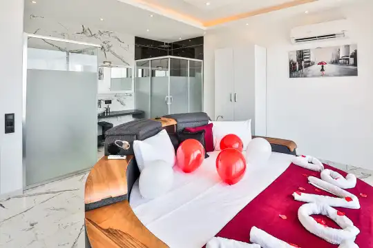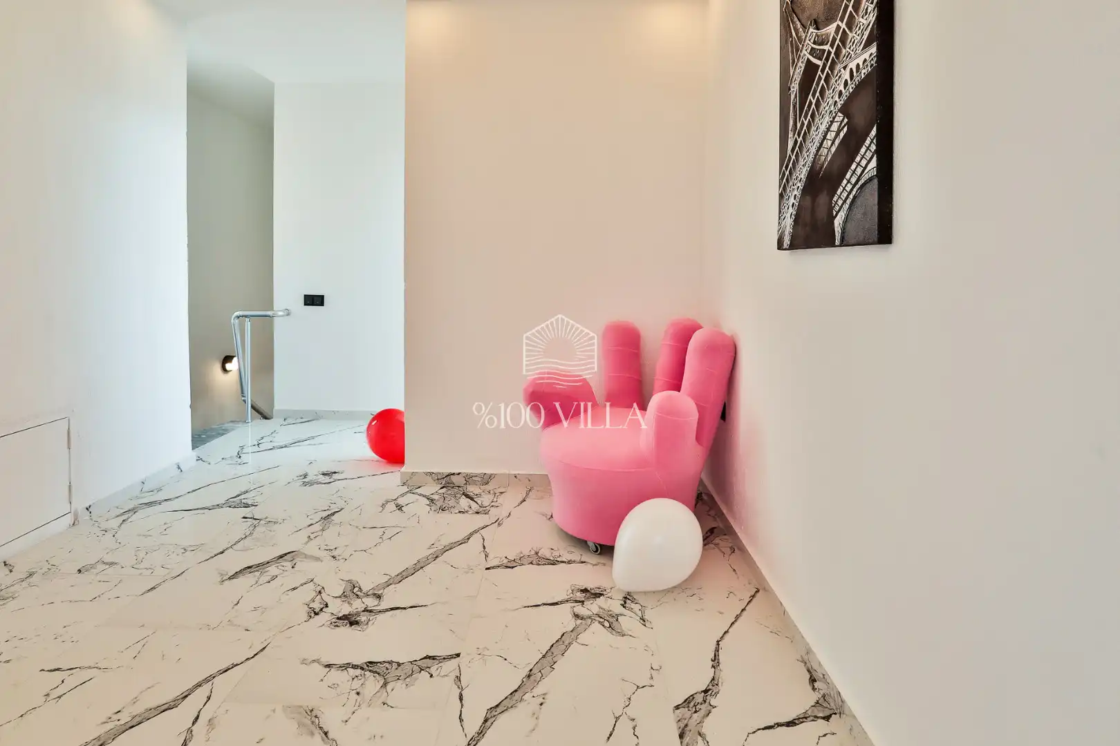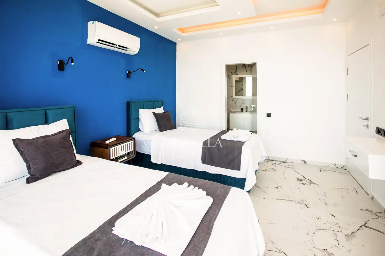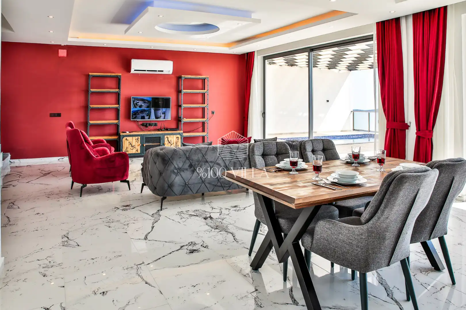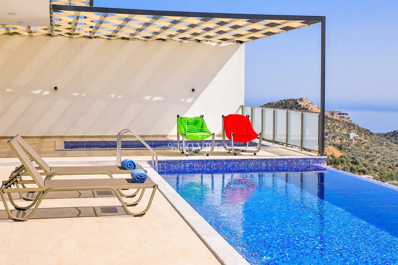 Villada bulunan çocuk havuzu ve büyük havuz, tüm aile bireylerine eşsiz bir yüzme deneyimi sunar. Havuz alanı korunaklı olarak tasarlanmıştır, bu sayede dışarıdan görülme endişesi olmadan rahatça yüzebilir ve güneşlenebilirsiniz. Yenilenen dekorasyonuyla villa, misafirlerine son derece modern ve şık bir atmosfer sunmaktadır.