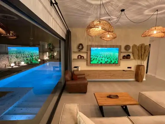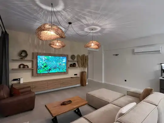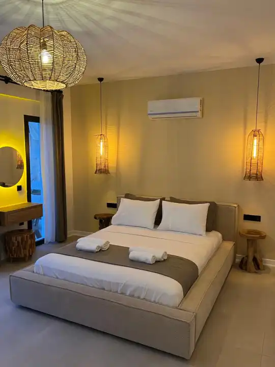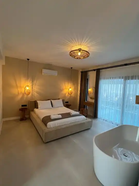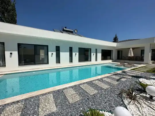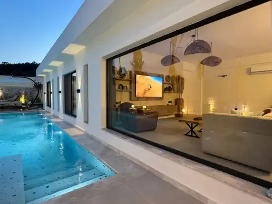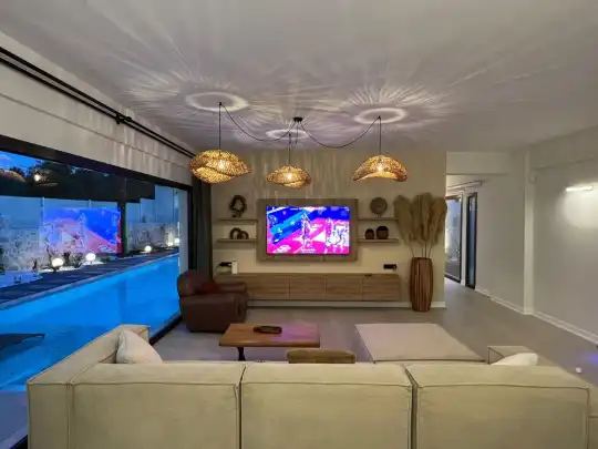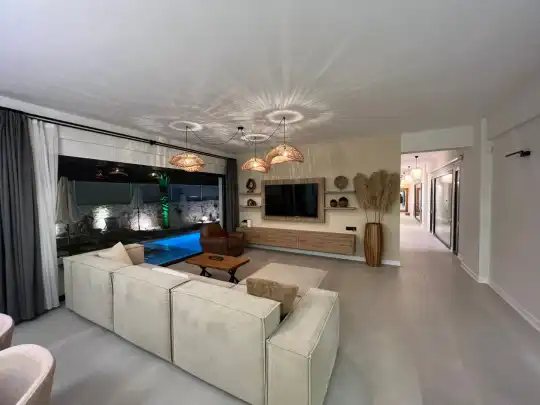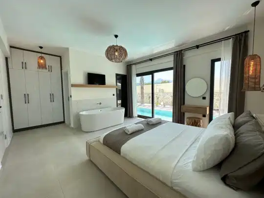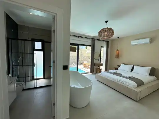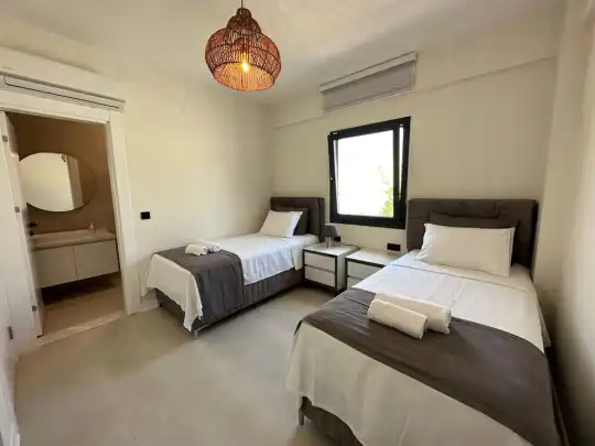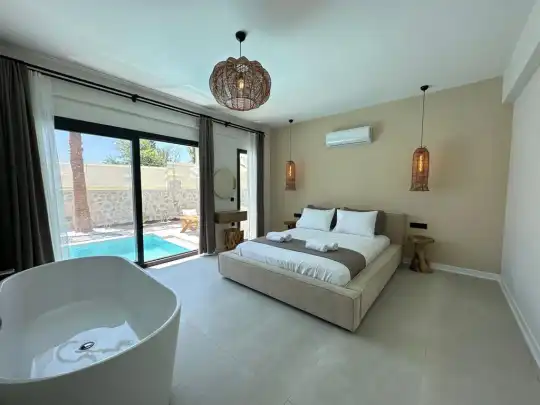 Toplam 3 yatak odasından oluşmuş, 6 kişi konaklama kapasitesine sahiptir. Oldukça şık ve modern bir şekilde döşenmiş olan villamızda misafirlerimiz için her şey düşünülmüştür. Havuz terasında bulunan şezlonglarda güneşlenebilir, bahçe masasında muhteşem yemekler yiyebilir, salıncakta sallanıp keyifli dakikalar geçirebilirsiniz.
