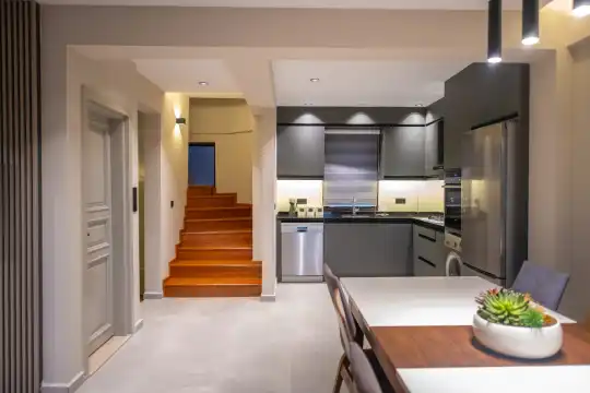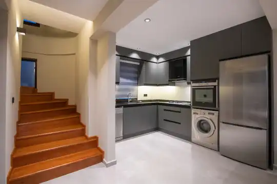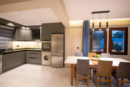 - Mutfak: Geniş ve modern mutfak ekipmanlarıyla donatılmış, yemek masası ve oturma düzeni