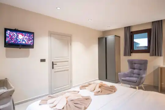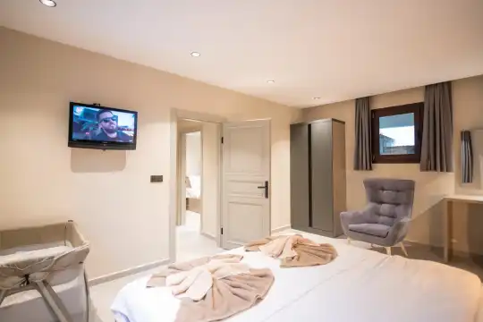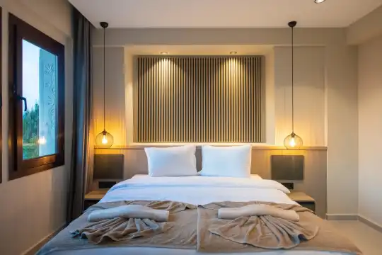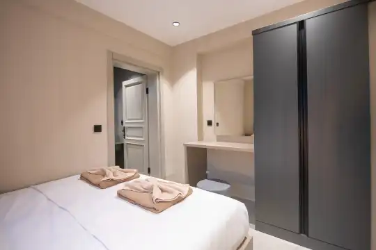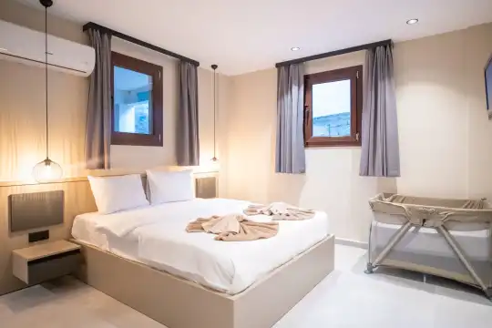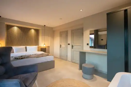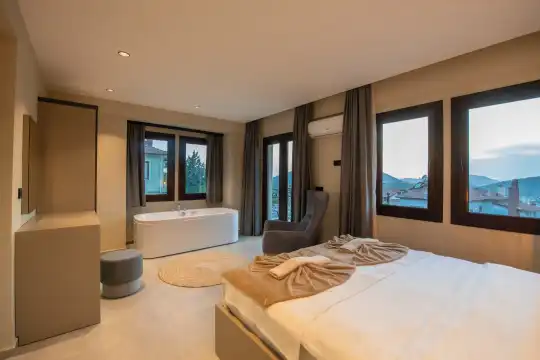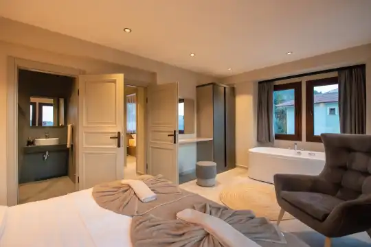 - Yatak Odası: Çift kişilik yatak, ebeveyn banyosu