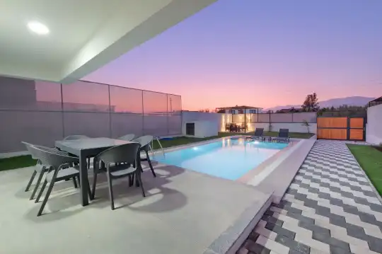 - Bahçe & Havuz Alanı: Geniş ve ferah bahçede şezlonglar, oturma grubu, salıncak ve barbekü alanı.