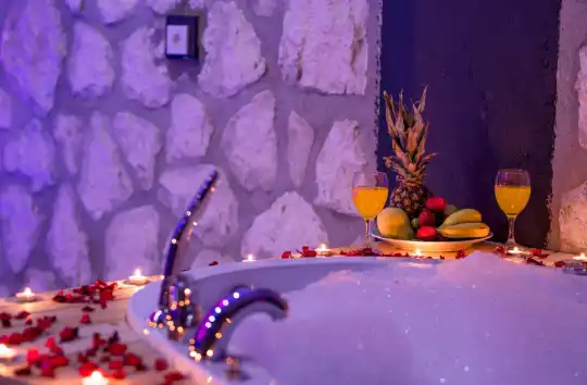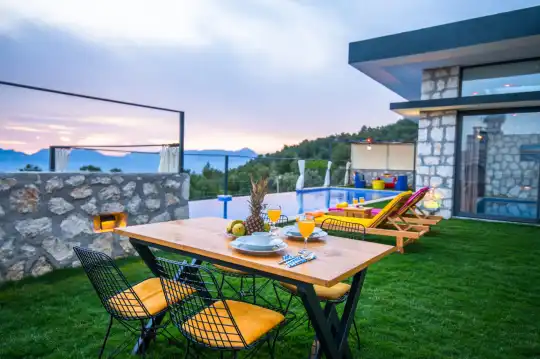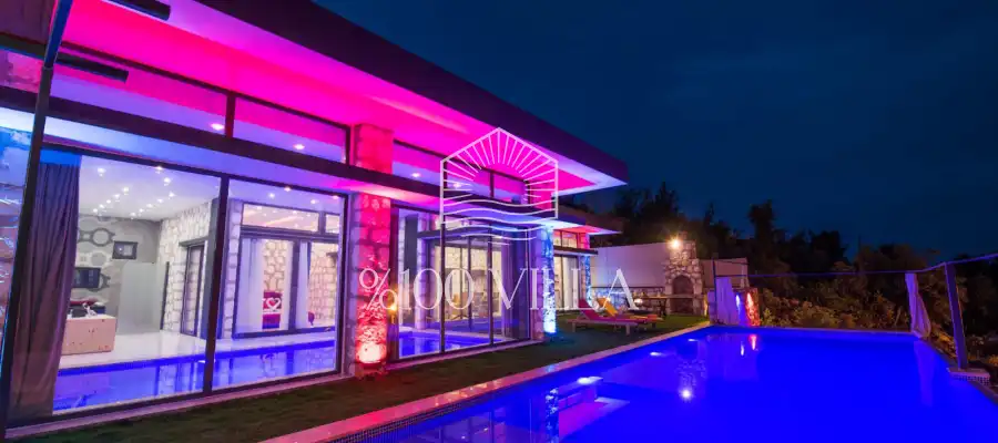 Muhafazakar kiralık villamız Kalkan’ın Üzümlü bölgesinde konumlanmıştır. Muhafazakar villamız doğa ile iç içe olup sevdiğiniz ile baş başa keyifli anlar geçirebileceğiniz küçük, şirin şekilde tasarlanmıştır. Yazlık villamızın havuz terası dışarıdan görünmemektedir ve gün batımını izlerken büyülenmemek elde değil. Villamız 2019 yılı yapımı olup hem iç dizaynında, hem dış tasarımında her şey en ince ayrıntısına kadar düşünülmüştür. Villa Gökkuşağına ulaşım gayet kolaydır. Yatak odası içerisinde bulunan ısıtmalı havuzun boyutları 6 x 3 metredir. 1 yatak odalı jakuzili muhafazakar villamızda sizi konuk etmekten mutluluk duyarız.