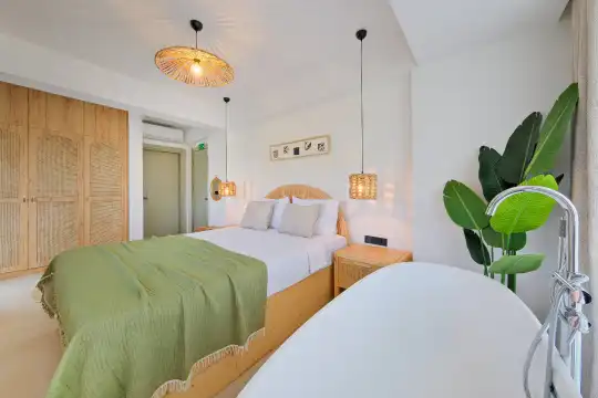 - Birinci Yatak Odası: Çift kişilik yatak, ebeveyn banyosu ve lüks bir Fransız küveti.