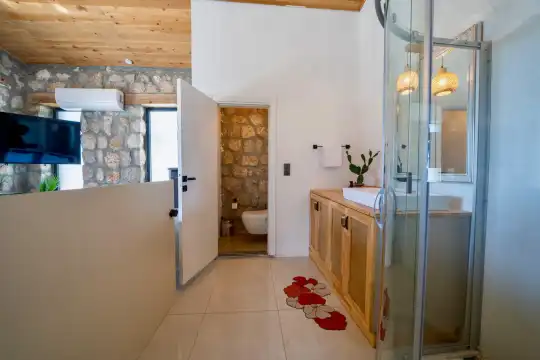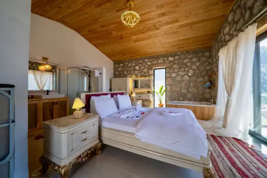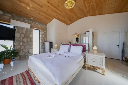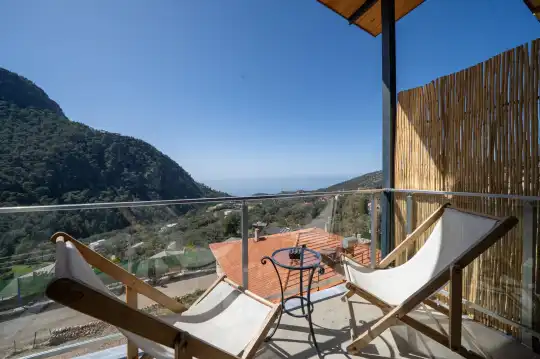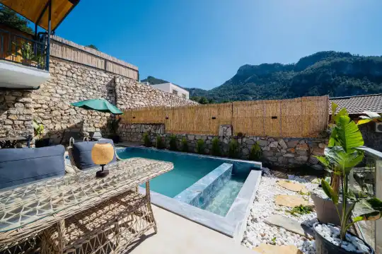 Villa Babadağ Esintisi 2, Fethiye Kirme mevkiindekonumlanan şirin bahçeli havuzu oldukça korunaklı villamızdır. Müstakil yüzme havuzu dışarıya karşı oldukça korunaklı olduğu için tatilde gözlerden uzak olmak isteyen misafirlerimiz rahat edeceklerdir. Toplam 1 yatak odasından oluşmuş, 2 kişi konaklama kapasitesine sahiptir. Balayı çiftleri için oldukça idealdir. Oldukça şık ve modern bir şekilde döşenmiş olan villamızda misafirlerimiz için her şey düşünülmüştür. Havuz terasında bulunan şezlonglarda güneşlenebilir, bahçe masasında muhteşem yemekler yiyebilir, salıncakta sallanıp keyifli dakikalar geçirebilirsiniz.