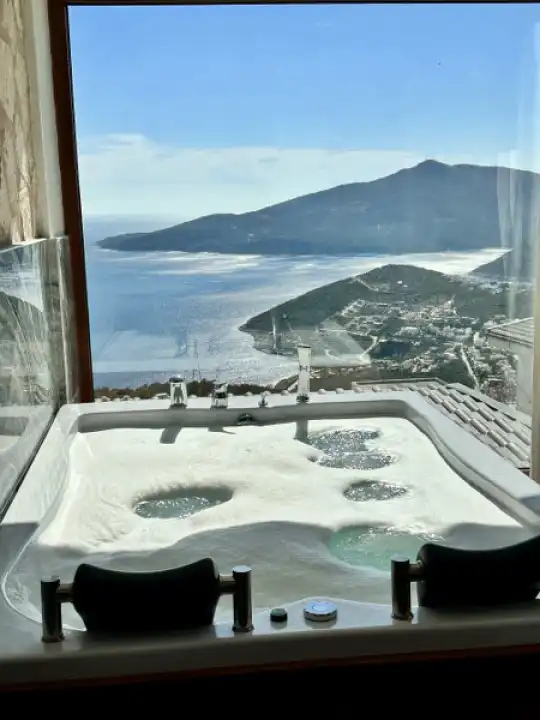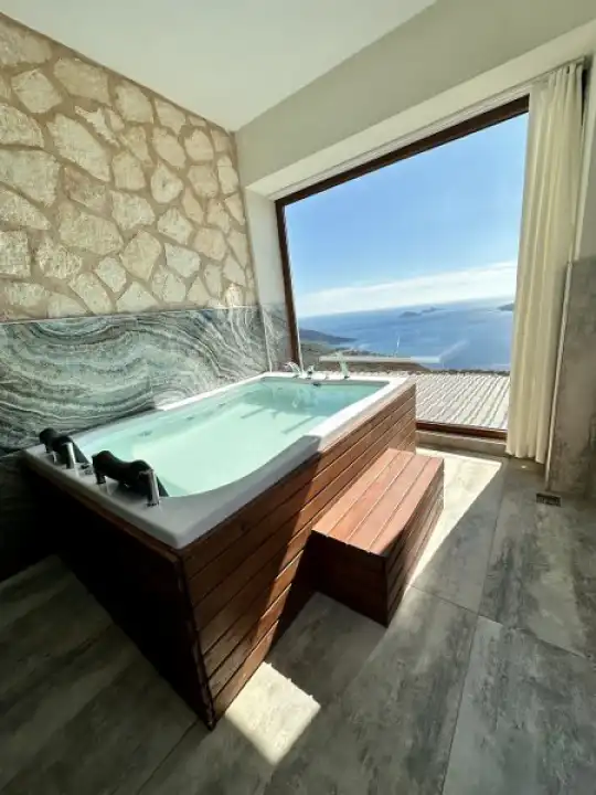 Villamız Kaş/Kalkan tatil beldesinin sakin konumlarından Kördere mevkiinde yer almaktadır. Son yılların villa tatili gözdesi olmuş, etrafı ormanlarla çevrili, merkeze araçla 5 dakikada ulaşabildiğiniz konumu ve muhteşem mazarasıyla konaklayanlarına lüks bir tatil imkanı sağlamaktadır. Villa Berat, 4 kişilik kapasiteye sahip villada 2 yatak odası yer alıyor. Villanın her odasında da birer banyosu mevcut. Açık mutfağı ve kendine ait bahçesindevar. Mutfağında bulaşık makinesi, buzdolabı, ankastre fırın, ve mutfakta ihtiyaç olan hemen hemen bütün gereçler bulunuyor. Villanın bahçesinde özel havuzu mevcut. Barbekü, masa, sandalyeler, şezlonglar ve şemsiyeler bahçe keyfini sınırsız yaşamanıza imkan tanıyor. Salonunda oturma grubu, televizyon, eşyalar bulunurken, tüm odalar için ayrı klima imkanı var.