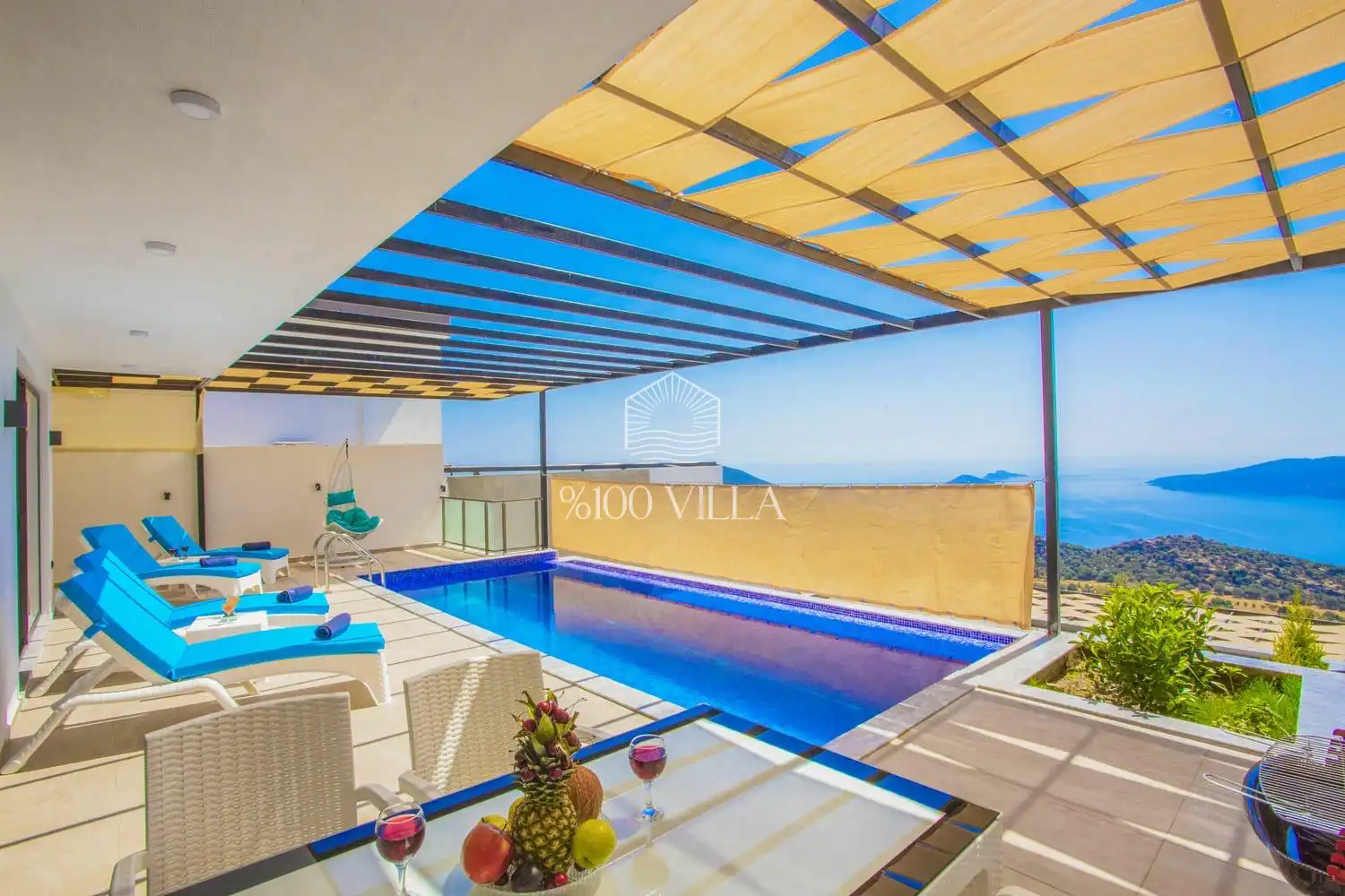 Villamız Antalya’nın en çok tercih edilen tatil bölgesi Kaş/Kalkan mevkiinde yer almaktadır. Masmavi koylara ve muhteşem adalar manzarasına hakim bir noktadadır. Doğa içerisinde, bol oksijenli tertemiz havasıyla konaklayanlarına sağlıklı ve dingin bir tatilin kapılarını aralamaktadır
