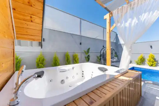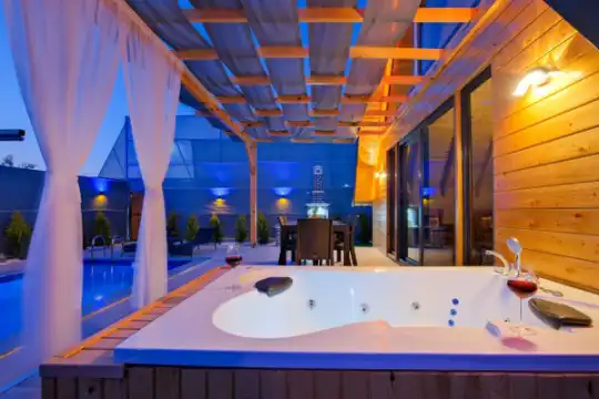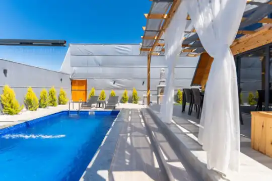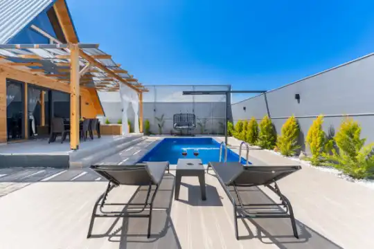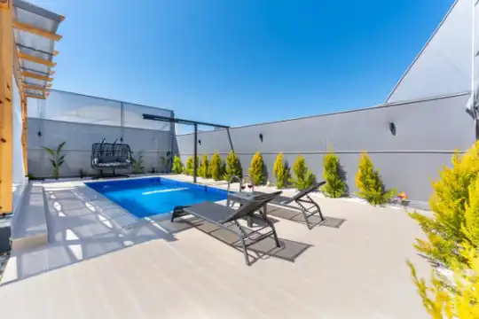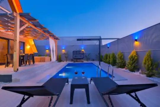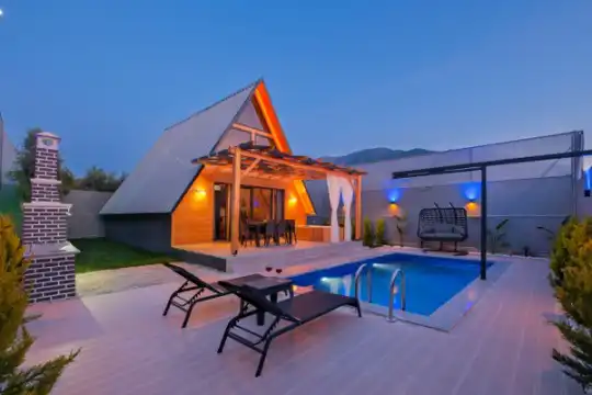 Fethiye'nin muhteşem doğasında şehir kargaşasından uzak bir tatil geçirmenizi sağlayacak olan villamızın havuz ve bahçe kısmında kapasiteye uygun oturma grubu, şezlong takımı, barbekü alanı; havuz terasına açılan, her ayrıntısı özenle tasarlanmış ferah bir oturma odası ve tam donanımlı açık mutfağı bulunmaktadır.