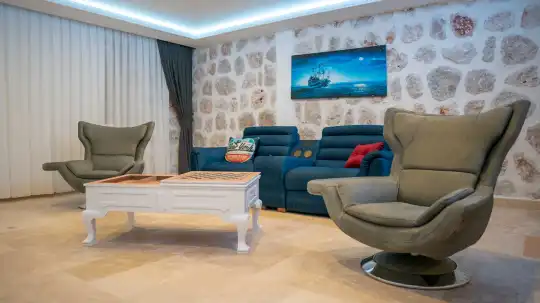Villamızın iç tasarımı ferah ve şık bir atmosfer sunacak şekilde planlanmıştır. Geniş cam pencereler doğal ışığı iç mekânlara taşırken, modern mobilyalar ve lüks detaylar evinizi sıcak ve konforlu bir yaşam alanına dönüştürür.