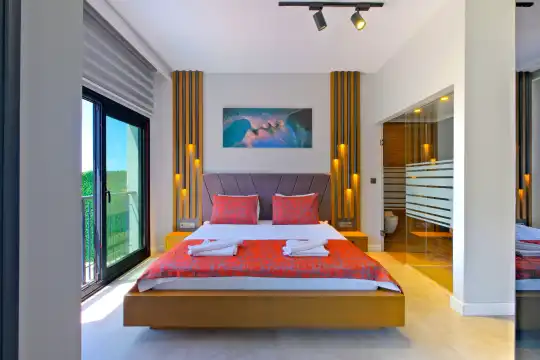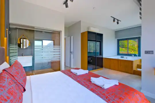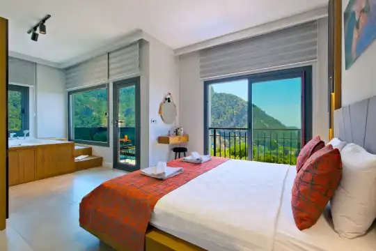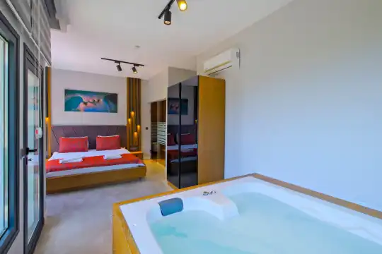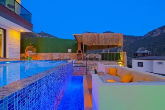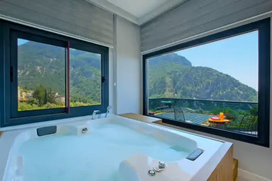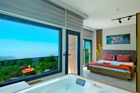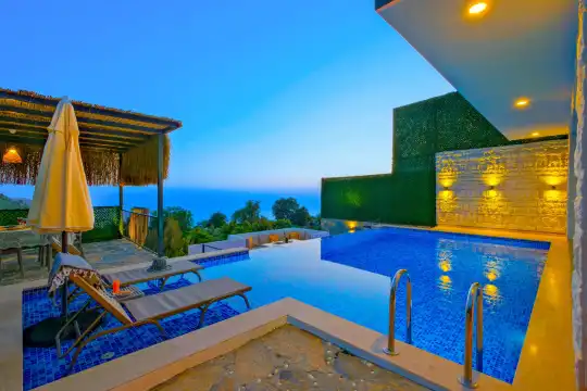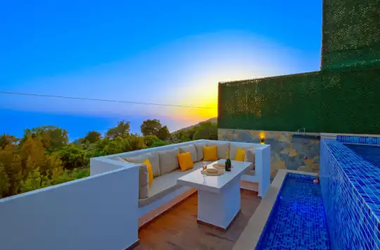 Muhteşem bir deniz manzarasına sahip olan villamız havuz terasının korunaklı yapısından dolayı muhafazakar aileler ve balayı çiftleri için oldukça idealdir. Sevdiklerinizle birlikte günbatımına karşı içeceklerinizi yudumlayıp manzaranın tadını çıkarabilirsiniz. Villamızda bulunan jakuzi ise rahatlayıp tüm yılın yorgunluğunu üzerinizden atmanıza yardımcı olacaktır.
