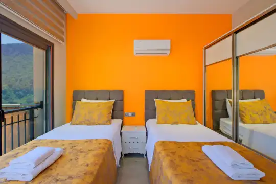Villa Çağ 4 kişilik kapasiteye sahip villada 2 yatak odası yer alıyor. Villanın her iki odasında da birer banyosu ve jakuzisi mevcut. Açık mutfağı ve kendine ait bahçesinde bir havuzu var. Mutfağında bulaşık makinesi, buzdolabı, ankastre fırın, tost makinesi ve mutfakta ihtiyaç olan hemen hemen bütün gereçler bulunuyor. Villanın bahçesinde özel havuzu mevcut. Barbekü, masa, sandalyeler, şezlonglar ve şemsiyeler bahçe keyfini sınırsız yaşamanıza imkan tanıyor. Salonunda oturma grubu, televizyon, eşyalar bulunurken, tüm odalar için ayrı klima imkanı var.