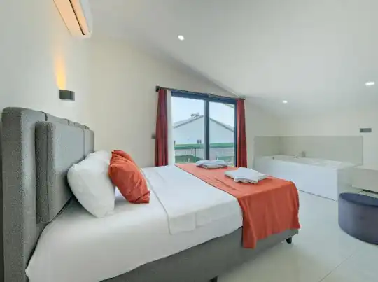 - 2. Yatak Odası: Çift kişilik yatak, ebeveyn banyosu.
