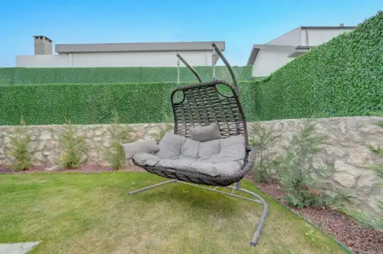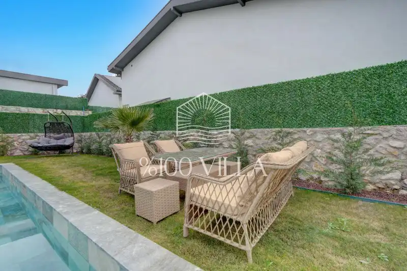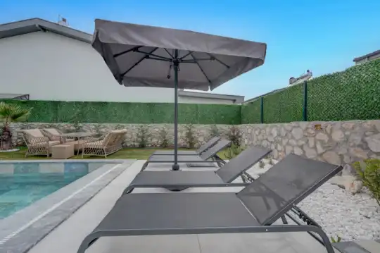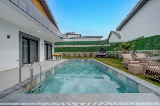 - Bahçe & Havuz Alanı: Geniş ve ferah bahçede şezlonglar, oturma grubu, salıncak ve barbekü alanı.