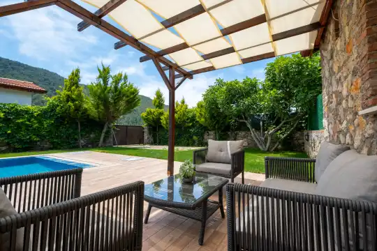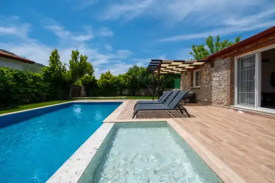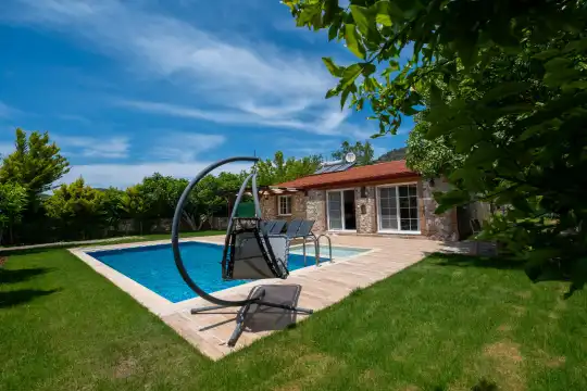 Villa Cansel 1, Fethiye Kayaköy de yer almaktadır. Doğal ve tarihi güzellikleri bir arada bulunduran Kayaköy'de muhteşem bir tatil fırsatı sunan, özenle döşenmiş iç tasarıma sahip olan Villa Cansel 1 oldukça korunaklı havuzu ile balayı tatilcilerine özel bir seçenektir. Villamızın bulunduğu konum Fethiye Kayaköy'dedir. Kayaköy eski Rum evlerinin olduğu tarihi bir köydür. Buraya geldiğinizde mutlaka bu Rum evlerini gezmenizi tavsiye ederiz. Kayaköy'de gezilip görülecek yerler arasında büyük ve küçük kilise ile on dört şapel bulunmaktadır. Küçük kilise yolundan yalnızca denizden veya yürüyerek ulaşımın mümkün olduğu Soğuk Su koyuna yaklaşık olarak 40 dakikada gidilebilmektedir.