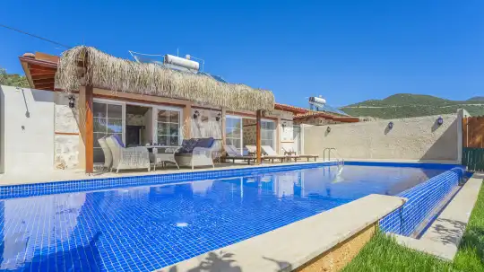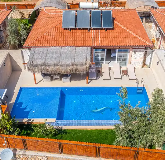 Korunaklı havuz terası sayesinde mahremiyete önem veren misafirlerimiz için uygundur. Villanın havuz başında yer alan barbekü alanı, doğayla iç içe keyifli akşamlar ve unutulmaz sohbetler için mükemmel bir ortam sağlar.