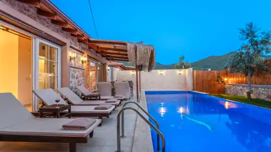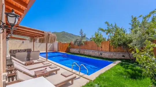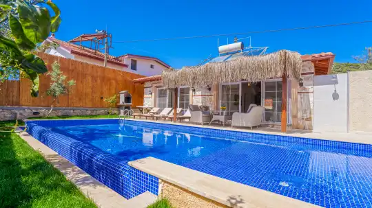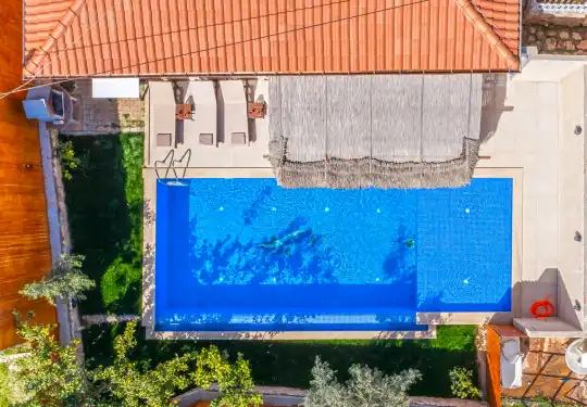 Korunaklı havuz terası sayesinde mahremiyete önem veren misafirlerimiz için uygundur. Villanın havuz başında yer alan barbekü alanı, doğayla iç içe keyifli akşamlar ve unutulmaz sohbetler için mükemmel bir ortam sağlar.