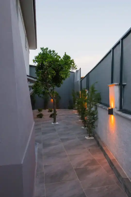 Bahçe alanı da iç mekanlar kadar özenle düzenlenmiş, huzurlu bir tatil atmosferi yaratılmıştır.