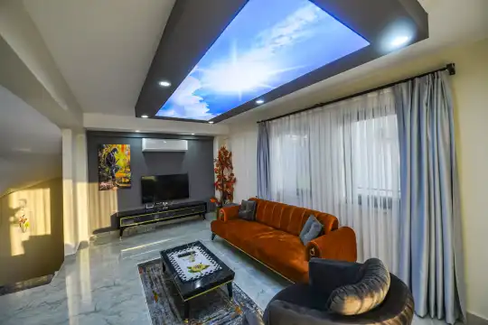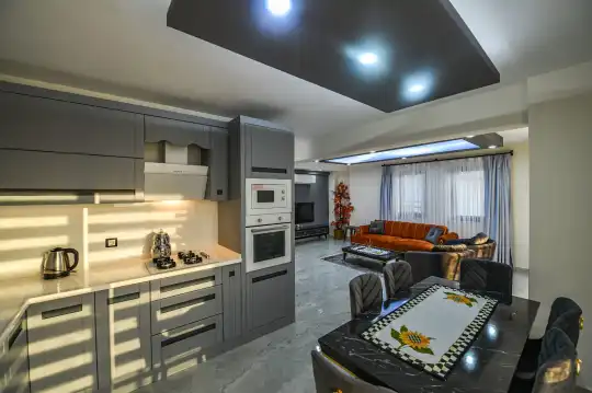 • Mutfak: Modern Amerikan mutfak, buzdolabı, bulaşık makinesi, fırın, ocak seti, mutfak gereçleri.