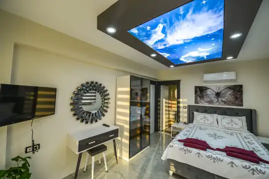 1. 1. Yatak Odası: Çift kişilik yatak, TV, klima, jakuzi, özel banyo/WC (1. kat)
