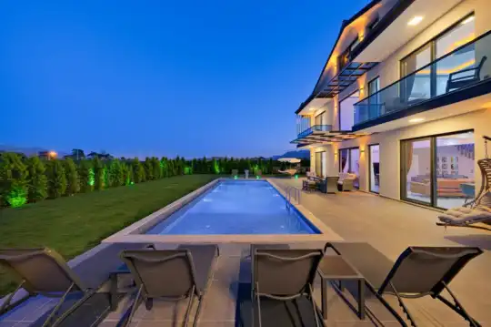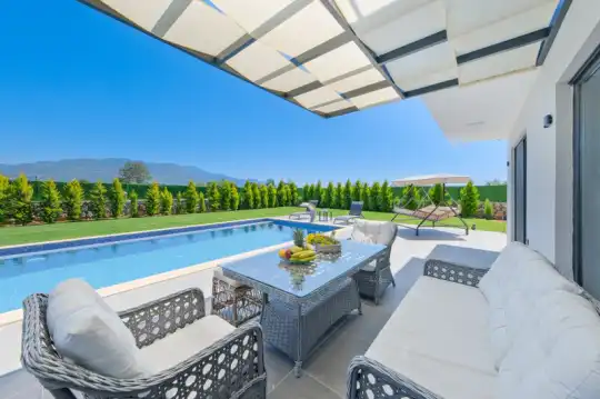 Villa Dilek Garden, Fethiye Seydikemer mahallesi Eşen Mevkinde konumlanan şirin bahçeli havuzu oldukça korunaklı villamızdır. Müstakil yüzme havuzu dışarıya karşı oldukça korunaklı olduğu için tatilde gözlerden uzak olmak isteyen misafirlerimiz rahat edeceklerdir.Toplam 4 yatak odasından oluşmuş, 8 kişi konaklama kapasitesine sahiptir. Geniş aileler ve kalabalık arkadaş grupları için oldukça idealdir. Oldukça şık ve modern bir şekilde döşenmiş olan villamızda misafirlerimiz için her şey düşünülmüştür. Havuz terasında bulunan şezlonglarda güneşlenebilir, bahçe masasında muhteşem yemekler yiyebilir, salıncakta sallanabilirsiniz, havuz terasındaki jakuzi ile keyifli dakikalar geçirebilirsiniz. Sığ havuz ölçüleri 4 m x 2.20 m ve derinliği 30 cm'dir. Havuzun toplam boyu sığ havuz ile birlikte 12.7 m'dir.