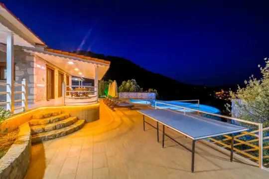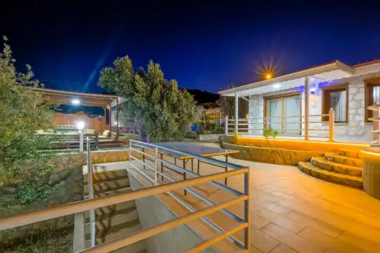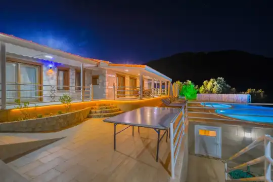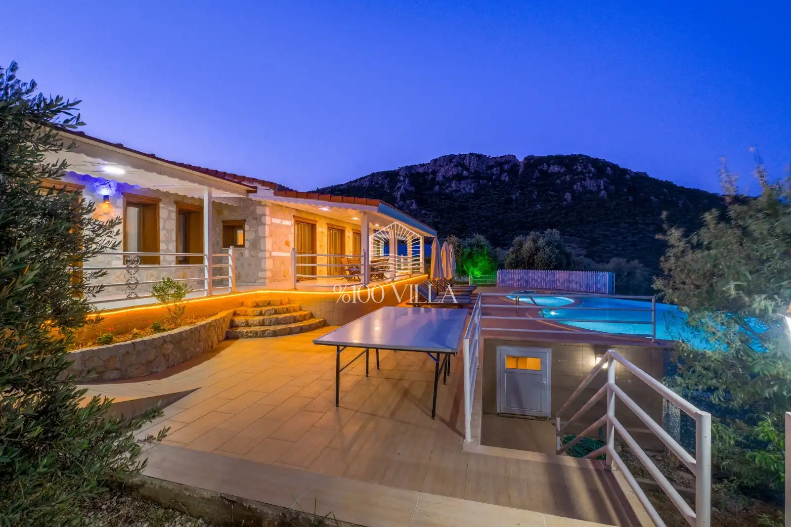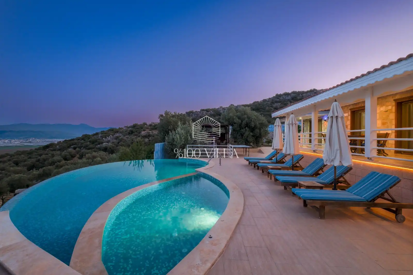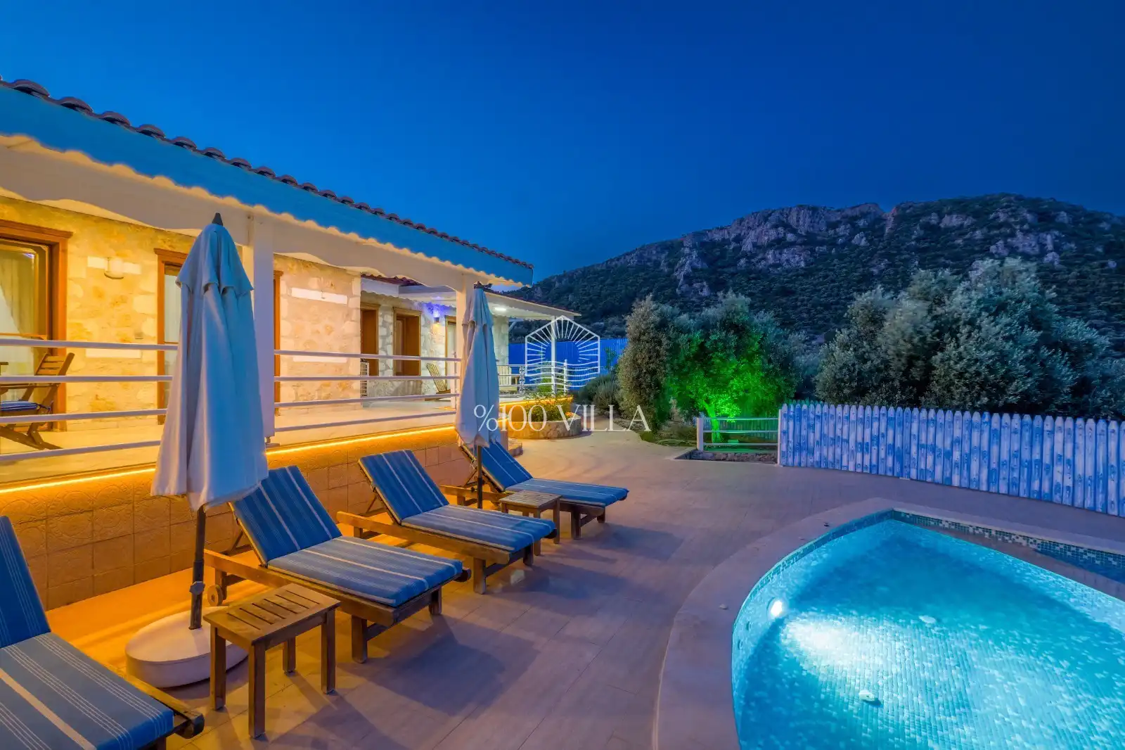 Kalkan’ın doğayla iç içe bölgelerinden Üzümlü mevkiinde konumlanan Villa Dream 1, geniş aileler ve arkadaş grupları için özel olarak tasarlanmış özel havuzlu kiralık villa seçenekleri arasında yer almaktadır. 3+1 konsepti ile ferah ve kullanışlı yaşam alanları sunan villa, modern mimarisi ve şık dekorasyonu sayesinde konforlu bir tatil deneyimi vadeder. Doğa ve deniz manzarasına hakim konumu ile misafirlerine huzurlu ve keyifli bir atmosfer sunar. 🌿🏡