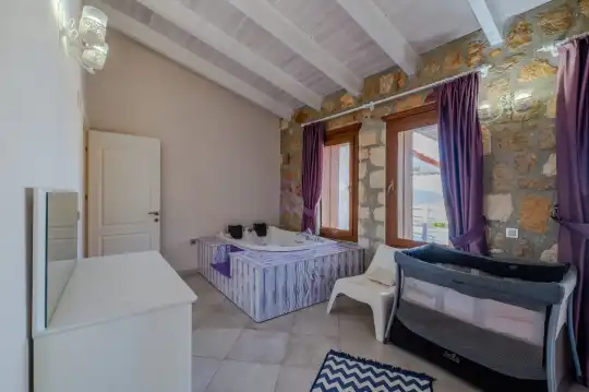 Muhafazakar ailelerin tercih edebileceği şekilde tasarlanan villada korunaklı özel yüzme havuzu bulunmakta olup, mahremiyet ön planda tutulmuştur. Ayrıca villada yer alan jakuzi, tatilinize ekstra konfor ve keyif katmaktadır. Geniş bahçe alanı, dinlenme köşeleri ve tam donanımlı mutfağı sayesinde tatiliniz boyunca evinizin rahatlığını hissedebilirsiniz. ✨
