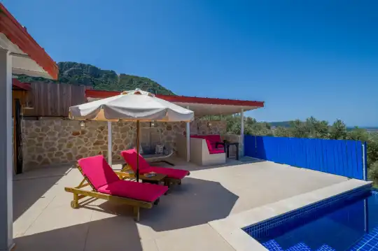 Deniz ve doğa manzarası eşliğinde unutulmaz anılar biriktirebileceğiniz Villa Dream 2, Kalkan’da balayı villası, korunaklı kiralık villa ve özel havuzlu villa arayan çiftler için mükemmel bir tatil alternatifidir.