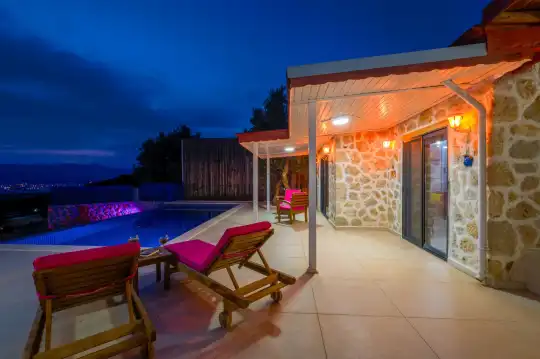 Deniz ve doğa manzarası eşliğinde unutulmaz anılar biriktirebileceğiniz Villa Dream 3, Kalkan’da balayı villası, korunaklı kiralık villa ve özel havuzlu villa arayan çiftler için mükemmel bir tatil alternatifidir.