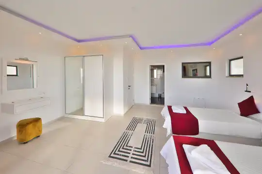 Kalkan’ın Kördere bölgesinde, doğa ve deniz manzarasının kusursuz bir uyumla buluştuğu noktada konumlanan Villa Dreamland, hem çiftler hem de çekirdek aileler için huzur dolu bir tatil sunuyor. Modern ve şık bir tasarıma sahip olan villamızda 2 yatak odası bulunmakta olup, toplamda 4 kişilik konaklama kapasitesine sahiptir. Yatak odalarından birinde yer alan jakuzi, günün yorgunluğunu atmanız ve rahatlamanız için size özel bir keyif alanı sunar.