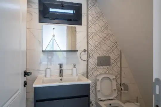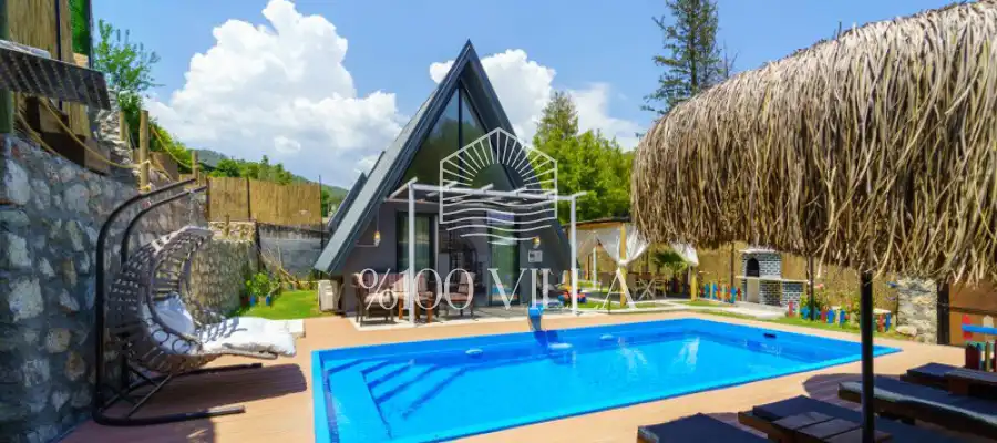 Muğla'nın Fethiye ilçesinin Kargı bölgesinde yer alan Villa Elif, size huzur dolu bir tatil vaat ediyor. Kargı köyü, kalabalıktan uzaklaşmak isteyen, sakinlik arayanlar için oldukça ideal bir lokasyon. Doğayla iç içe, taze meyve ve sebzelere dalından ulaşılabilinen köy; yeşillikler arasında dingin bir tatil fırsatı sunuyor. 2 yatak odasıyla, 4 kişi konaklama imkanı sunar. Temiz havası sayesinde son derece konforlu bir tatil geçirebileceğiniz Villa Elif muhafazakar olarak dizayn edilmiş; çekirdek aileler ve balayı çiftleri için oldukça ideal seçeneklerden biridir. Üçgen bir yapıda iki kat üzerine kurulu olan villa oldukça kullanışlı ve zevkli bir şekilde döşenmiştir.
