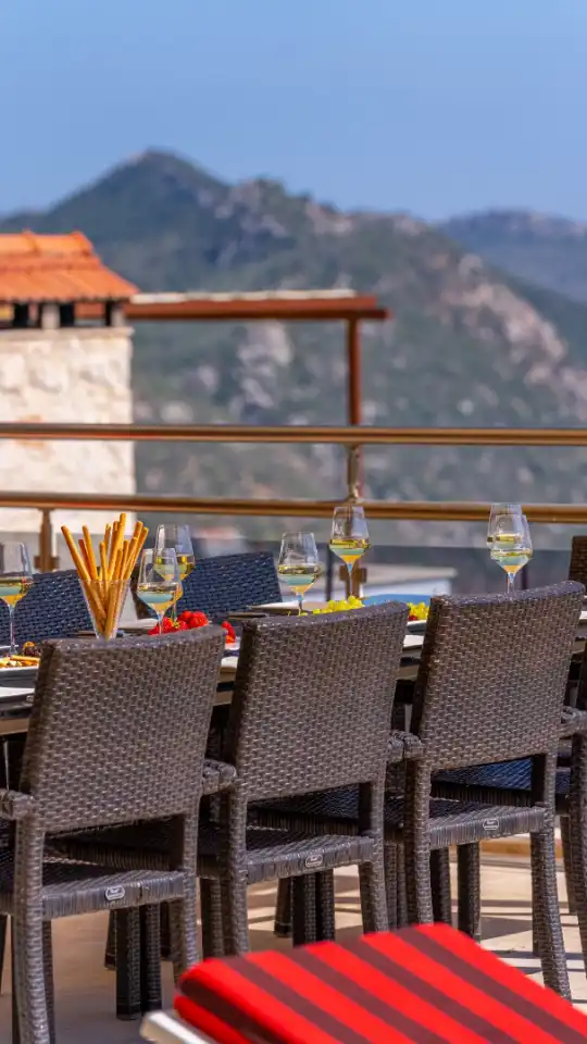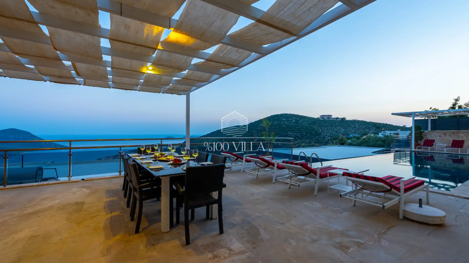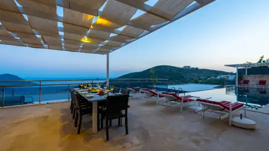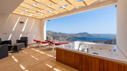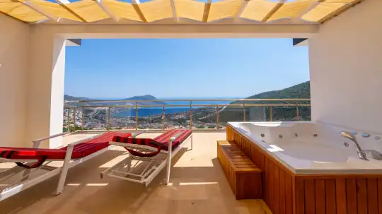 Kalkan Akbel bölgesinde bulunan Villa Elite 1, 12 kişi konaklama kapasitesine sahip 6 yatak odalı lüks villa seçeneklerimizdendir. Muhteşem deniz manzarasına sahip villamız keyifli bir tatil imkanı sunmaktadır.