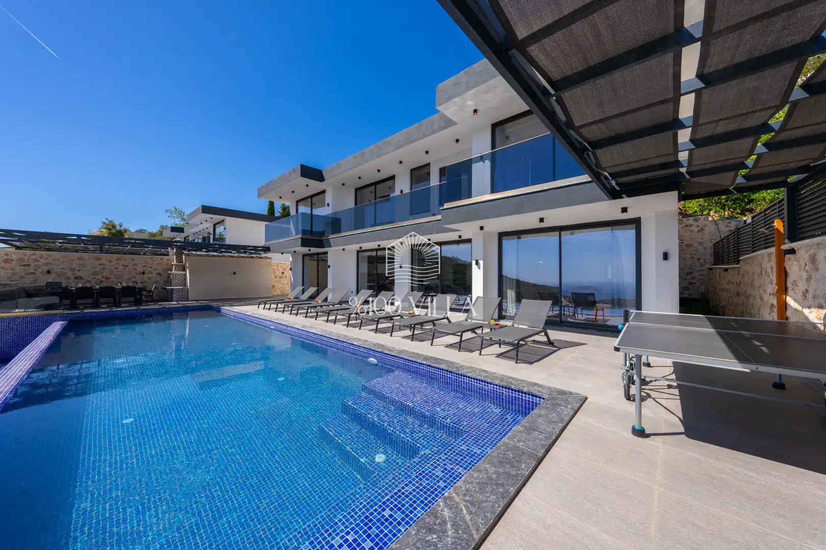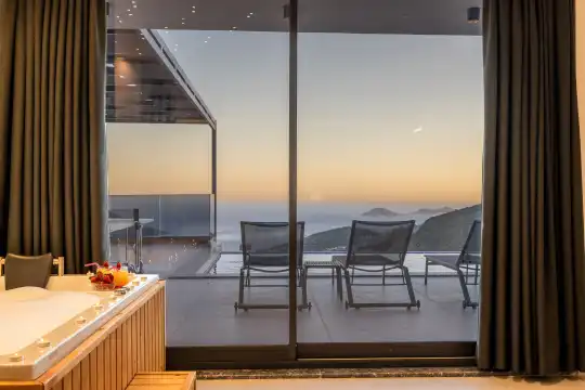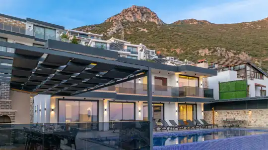 Kalkan Akbel bölgesinde bulunan Villa Elite 3, 10 kişi konaklama kapasitesine sahip 5 yatak odalı lüks villa seçeneklerimizdendir. Muhteşem deniz manzarasına sahip villamız keyifli bir tatil imkanı sunmaktadır.