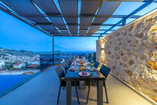 Villamız Antalya’nın en çok tercih edilen tatil bölgesi Kaş/Kalkan mevkiinde yer almaktadır. Masmavi koylara ve muhteşem adalar manzarasına hakim bir noktadadır. Doğa içerisinde, bol oksijenli tertemiz havasıyla konaklayanlarına sağlıklı ve dingin bir tatilin kapılarını aralamaktadır