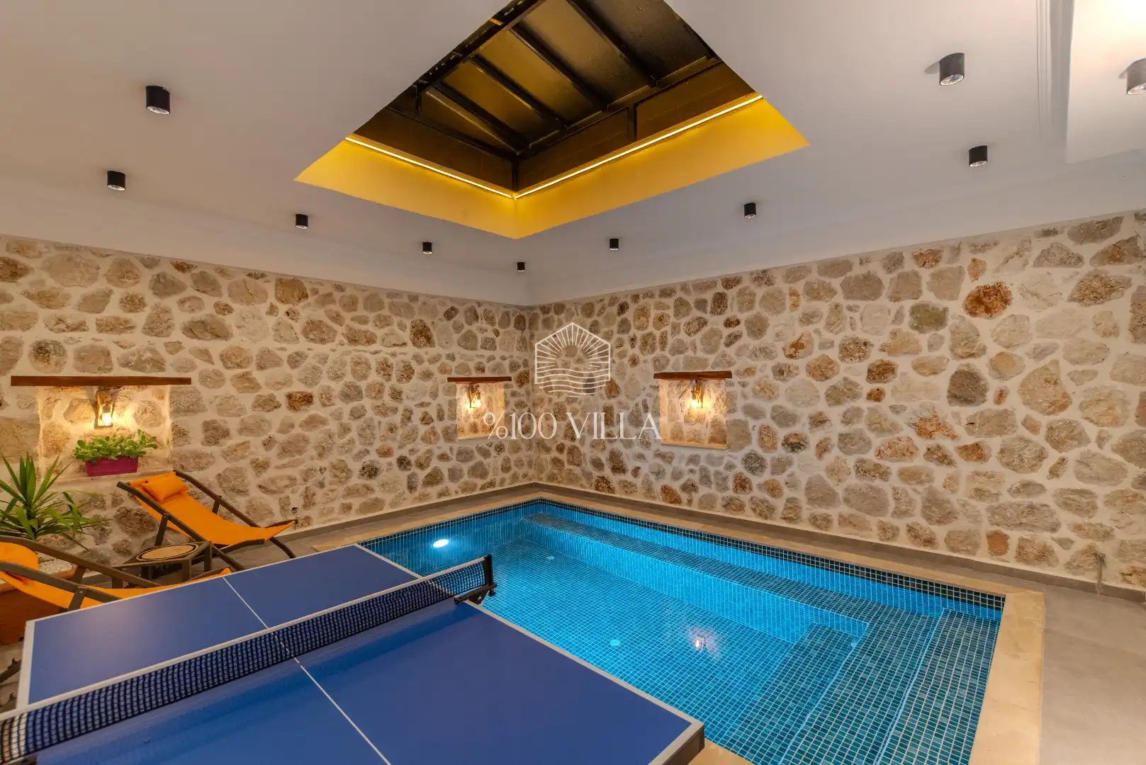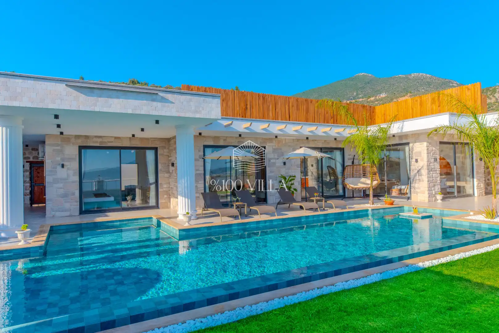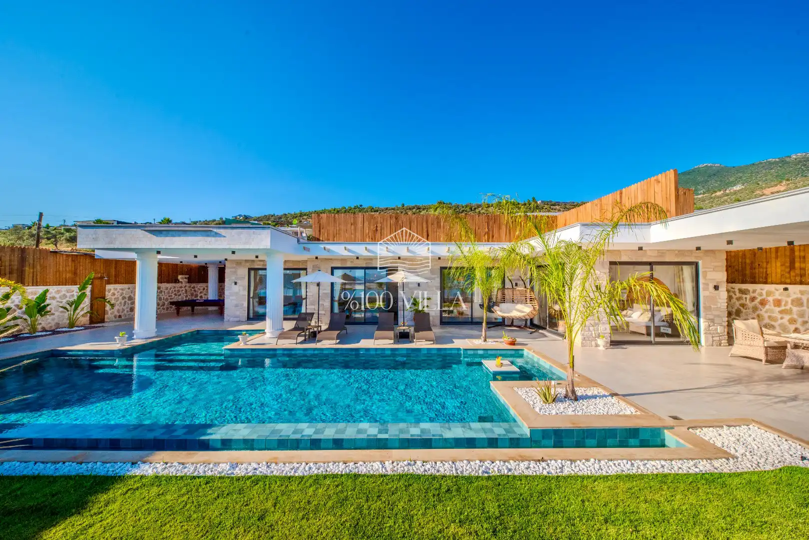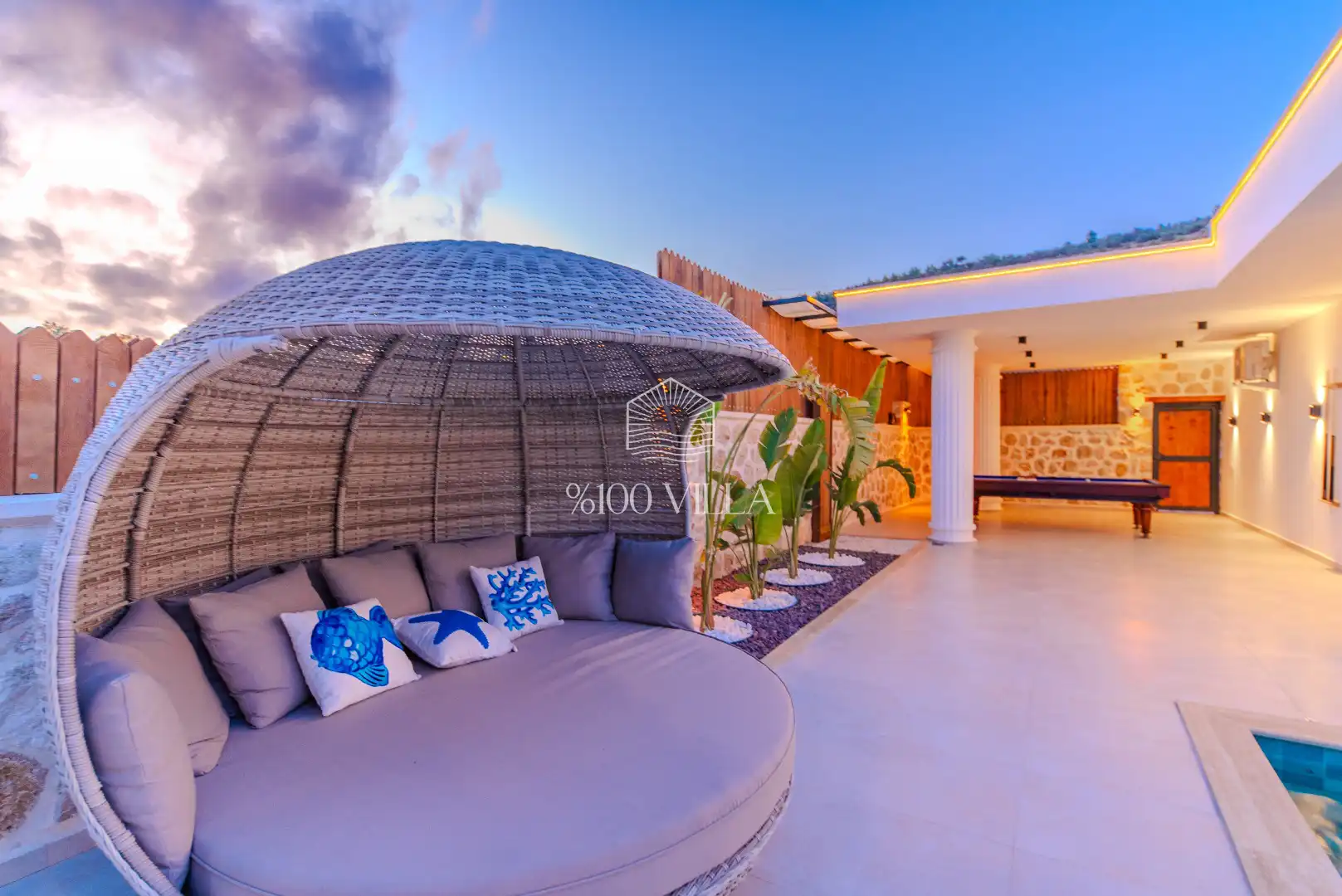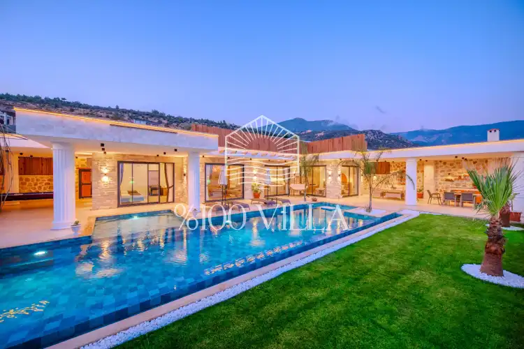 Kalkan Çavdır bölgesinde bulunan villa, 2 yatak odası ile 5 kişilik konaklama kapasitesi sunmaktadır. Mimarisi, kapalı havuz alanı ve çift jakuzisi ile balayı çiftleri ve çekirdek aileler için ideal seçenekler arasında yer almaktadır.
