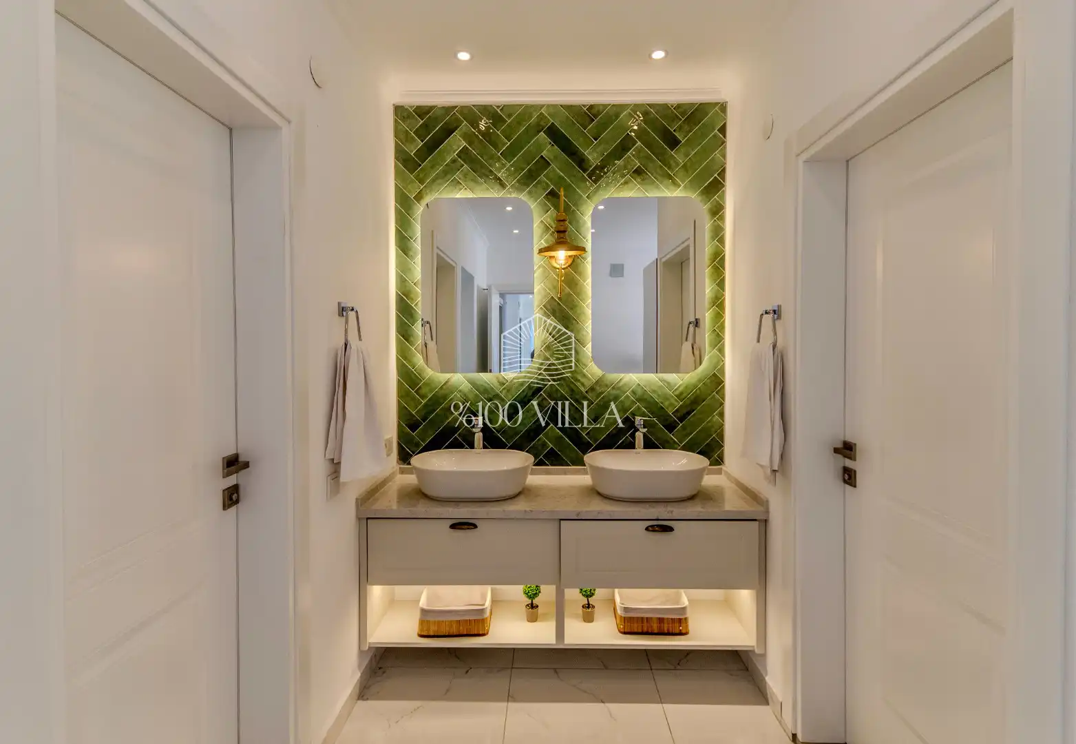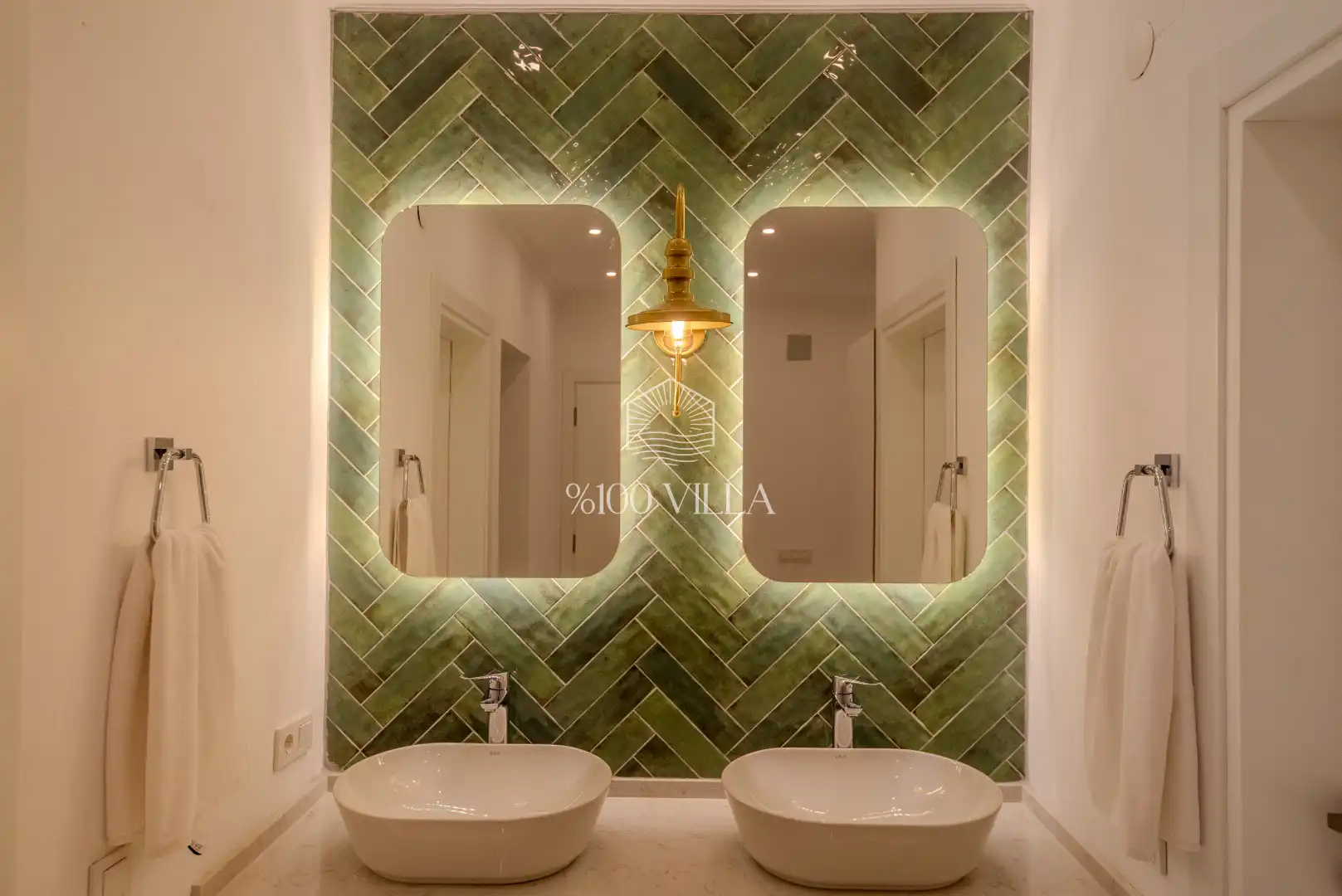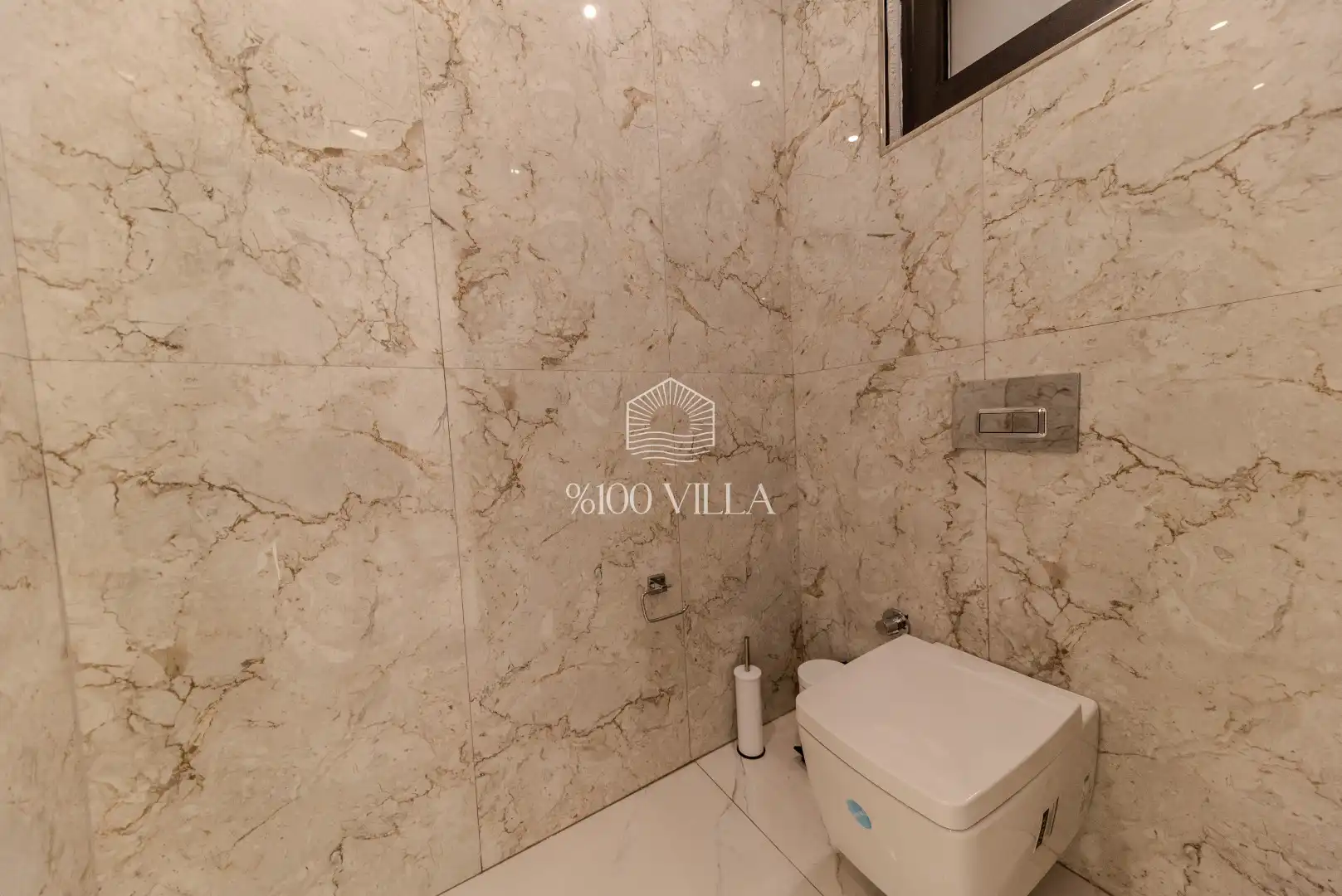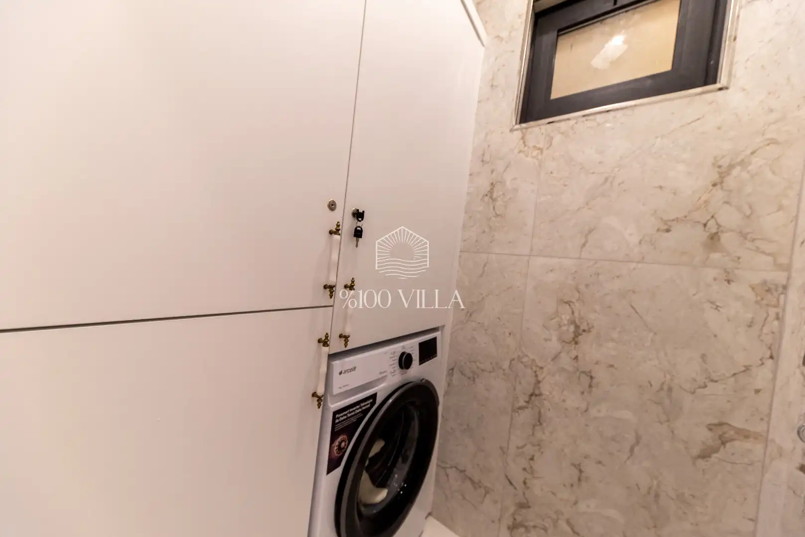 Şehirden uzak, lüks ve konforu bir arada deneyimleyebileceğiniz kriterlere ve olanaklara sahip villa; doğayla iç içe konumu ve tatilinize renk katacak havuz terasında kapasiteye uygun şezlong takımı, salıncak, çocuk oyun ekipmanları, masa tenisi, bilardo, oturma grubu ve barbekü alanı ile keyifli bir alana sahiptir. Geniş havuz ve bahçeye açılan konforlu oturma odası ve tam donanımlı açık mutfağı; birinci yatak odasında çift kişilik yatak, ebeveyn banyosu ve jakuzi; ikinci yatak odasında ise bir tek kişilik yatak, bir çift kişilik yatak, jakuzi ve banyo bulunmaktadır.