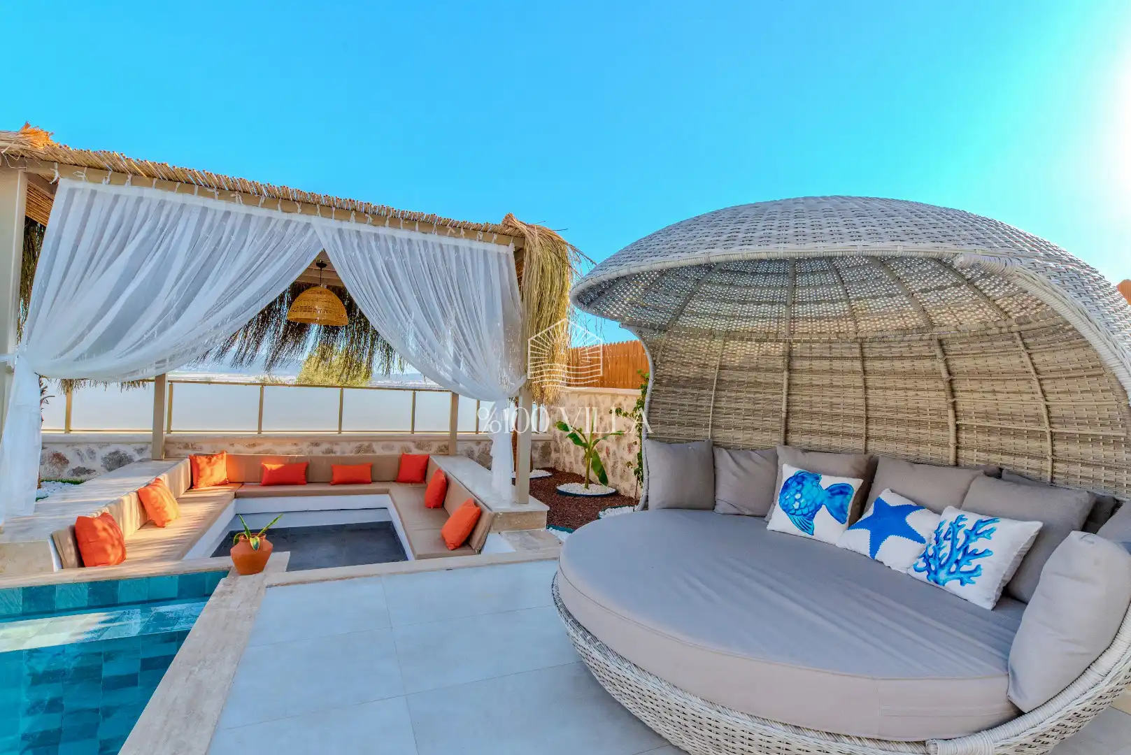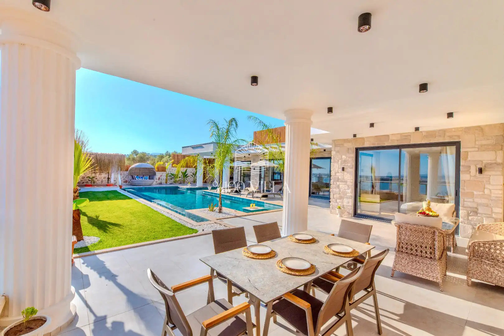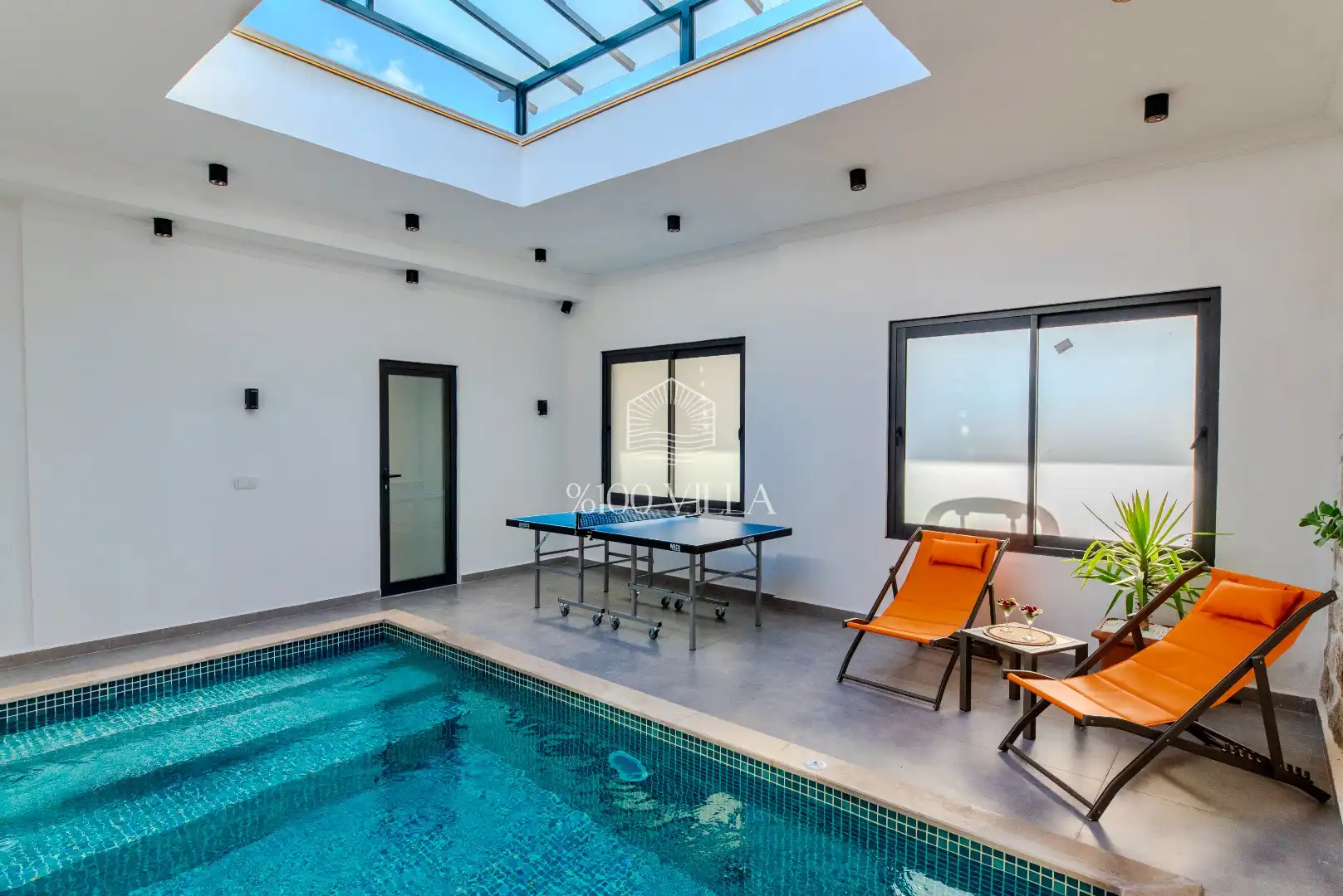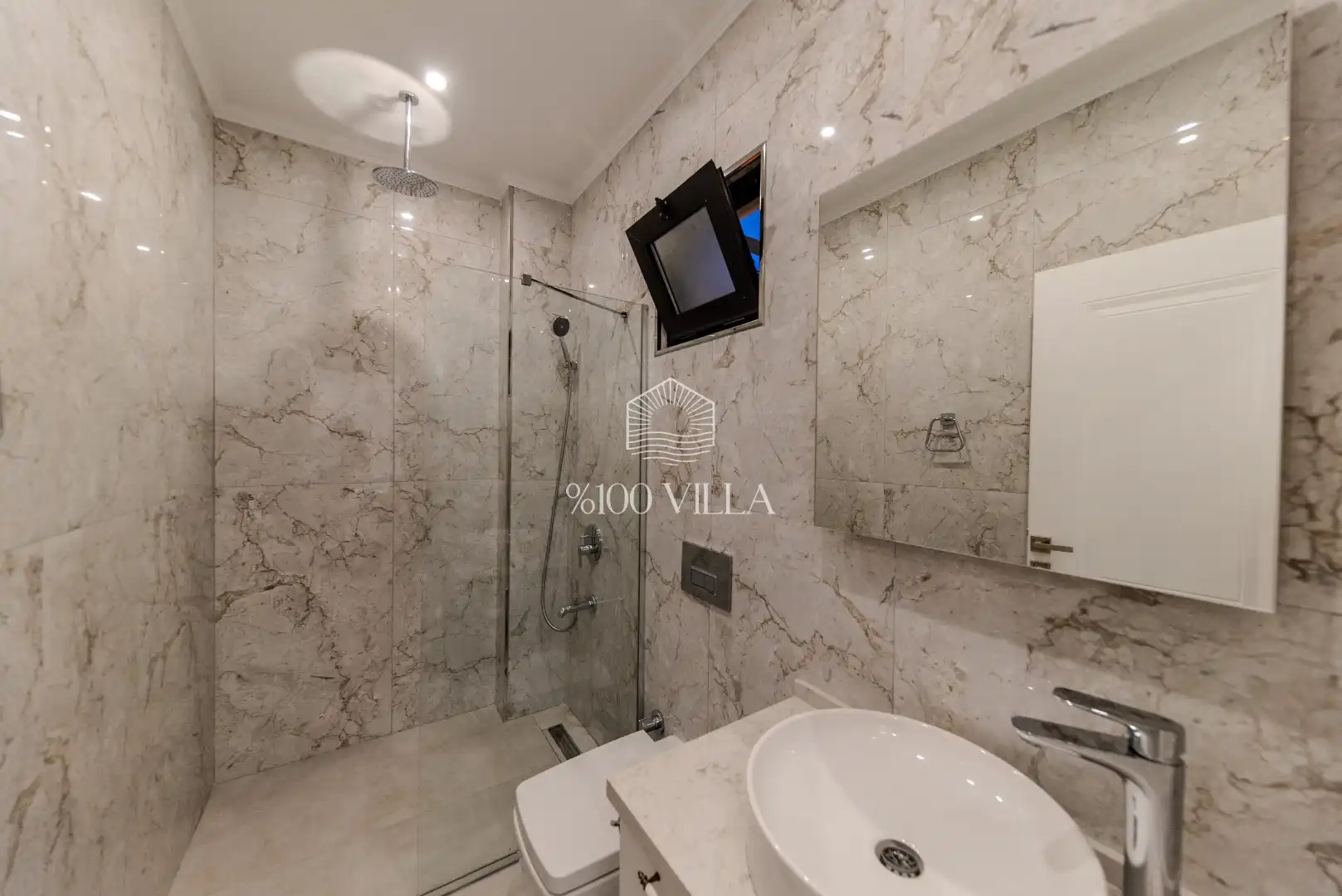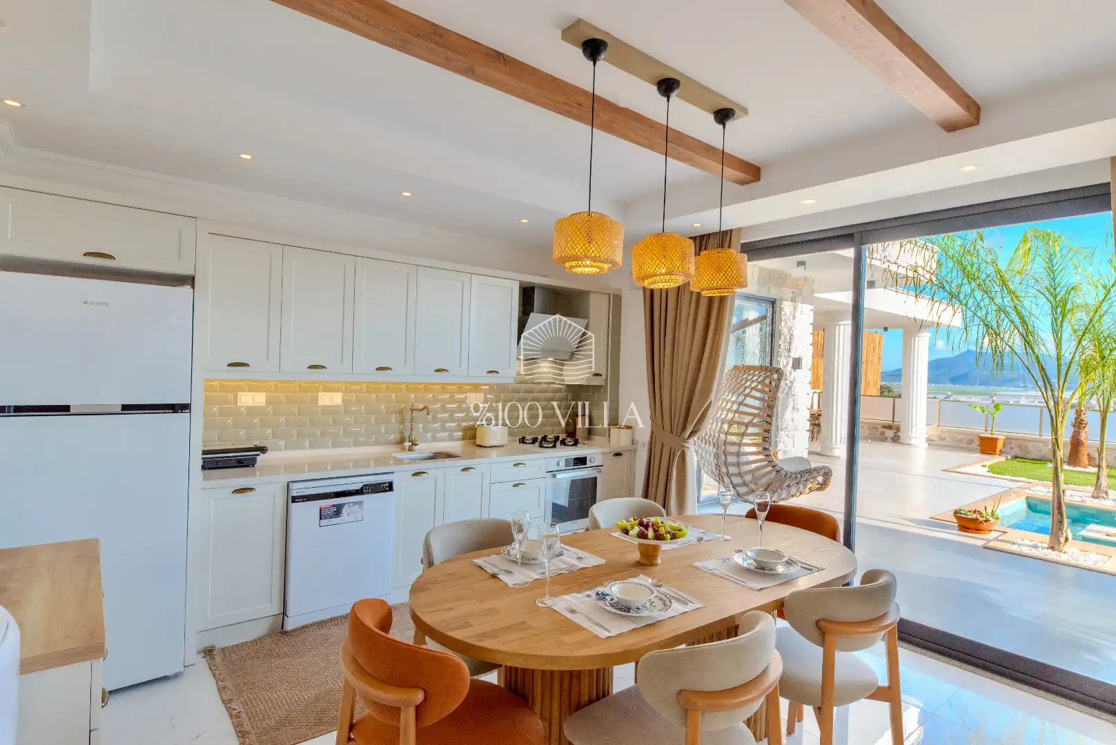 Şehirden uzak, lüks ve konforu bir arada deneyimleyebileceğiniz kriterlere ve olanaklara sahip villa; doğayla iç içe konumu ve tatilinize renk katacak havuz terasında kapasiteye uygun şezlong takımı, salıncak, çocuk oyun ekipmanları, masa tenisi, bilardo, oturma grubu ve barbekü alanı ile keyifli bir alana sahiptir. Geniş havuz ve bahçeye açılan konforlu oturma odası ve tam donanımlı açık mutfağı; birinci yatak odasında çift kişilik yatak, ebeveyn banyosu ve jakuzi; ikinci yatak odasında ise bir tek kişilik yatak, bir çift kişilik yatak, jakuzi ve banyo bulunmaktadır.