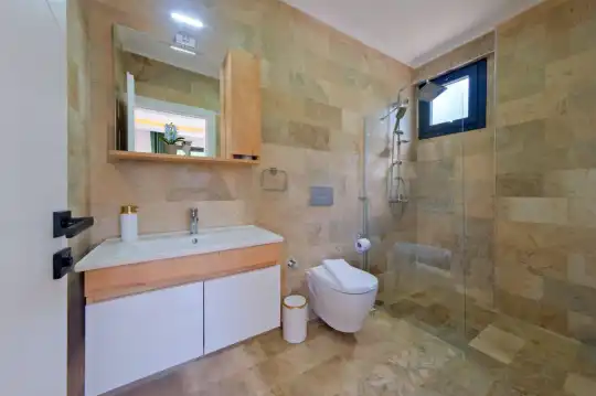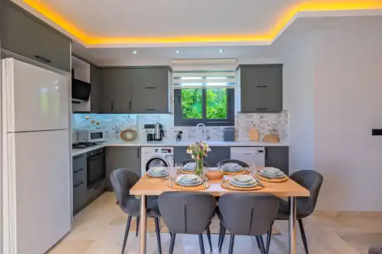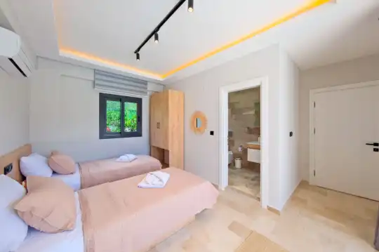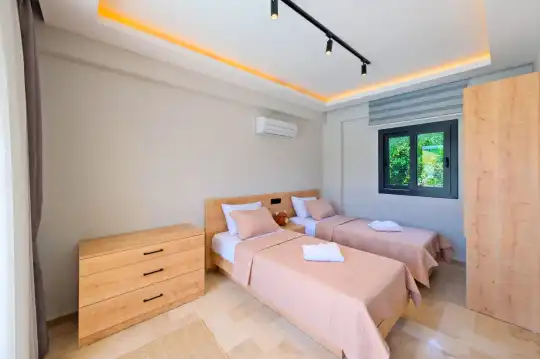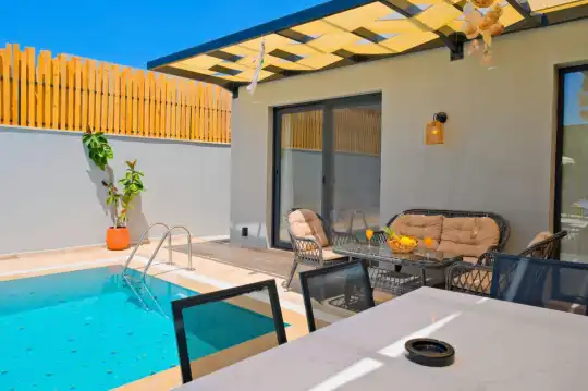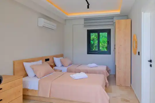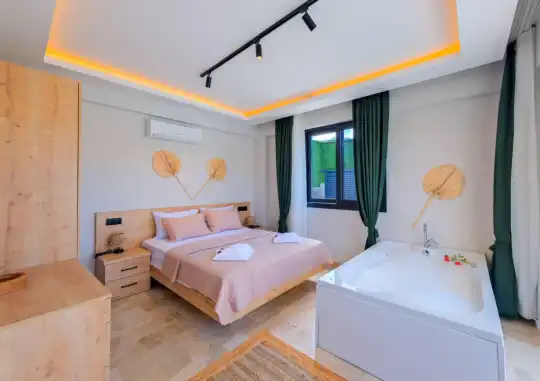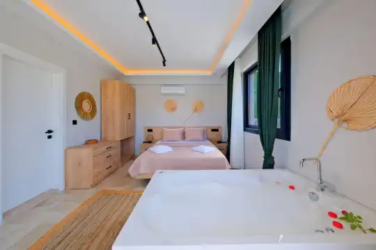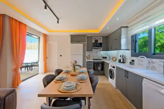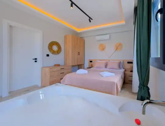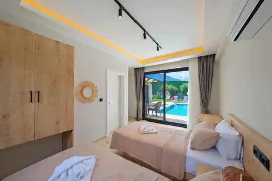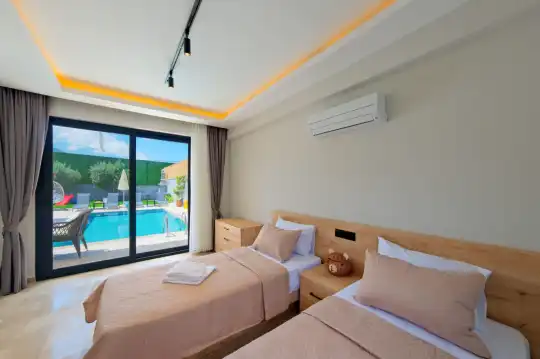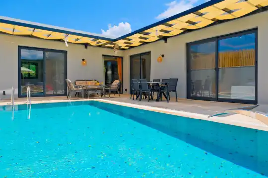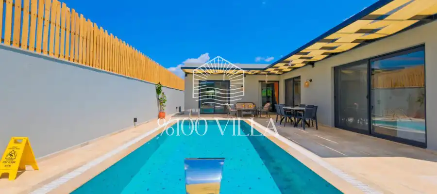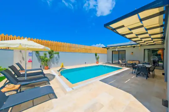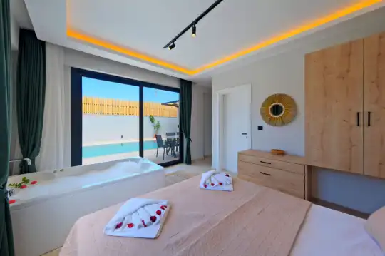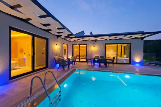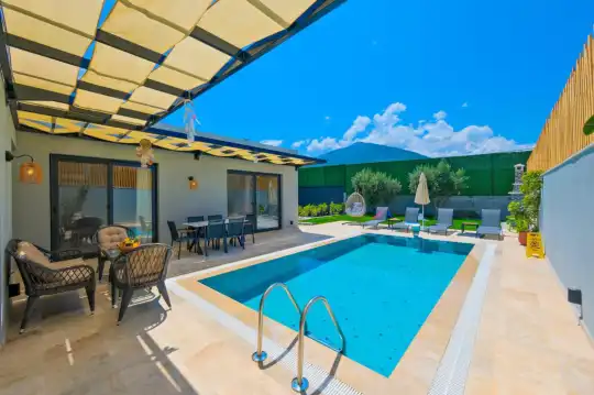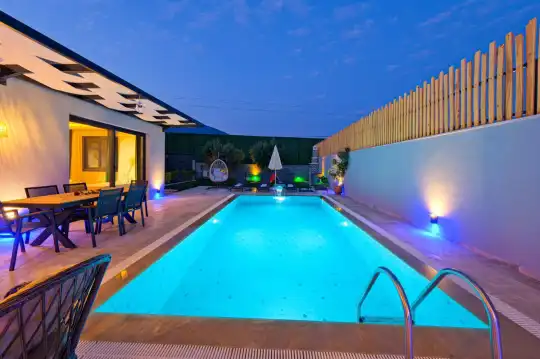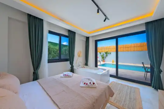 Fethiye merkezde yer alan bu villa, 2 yatak odasıyla 4 kişilik konaklama kapasitesi sunmaktadır. Çekirdek aileler ve balayı çiftleri için ideal olan villa, korunaklı havuz alanıyla mahremiyet sağlarken, konforlu bir tatil imkanı sunar.