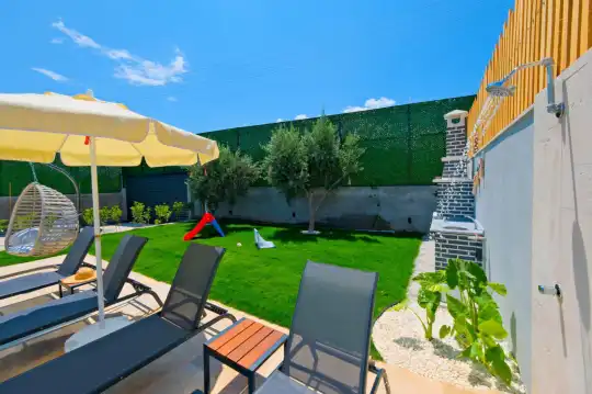 Misafirler, bu villada huzurlu bir atmosferde güneşin ve havuzun tadını çıkarabilir ya da kısa sürede merkeze ve eşsiz plajlara ulaşarak tatillerini değerlendirebilir. Keyifli bir tatil için bu villa, değerli misafirlerini ağırlamayı beklemektedir.