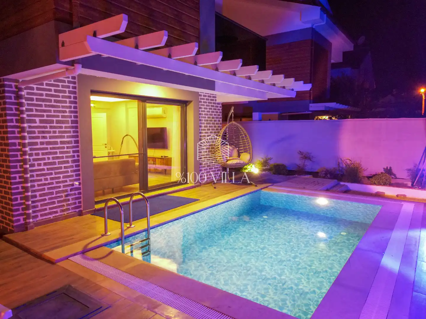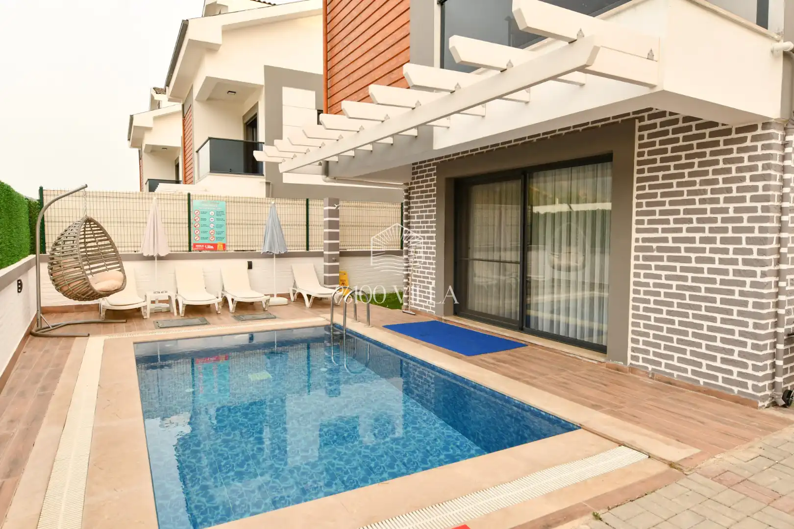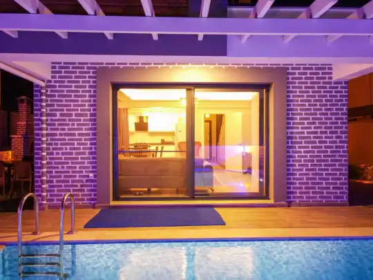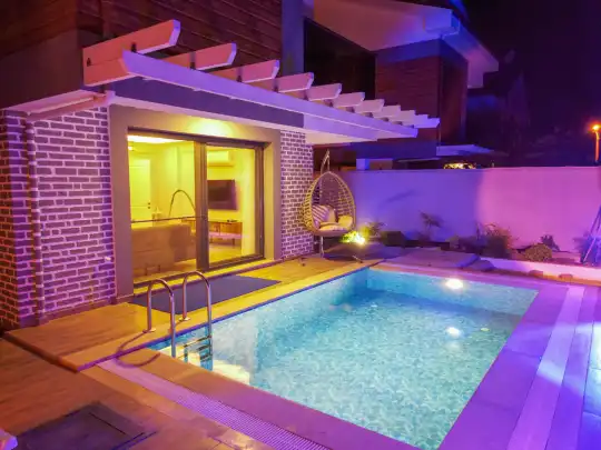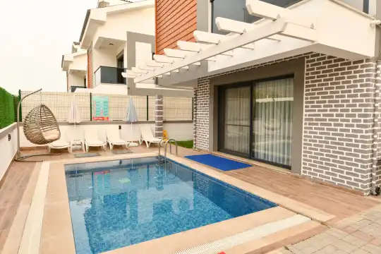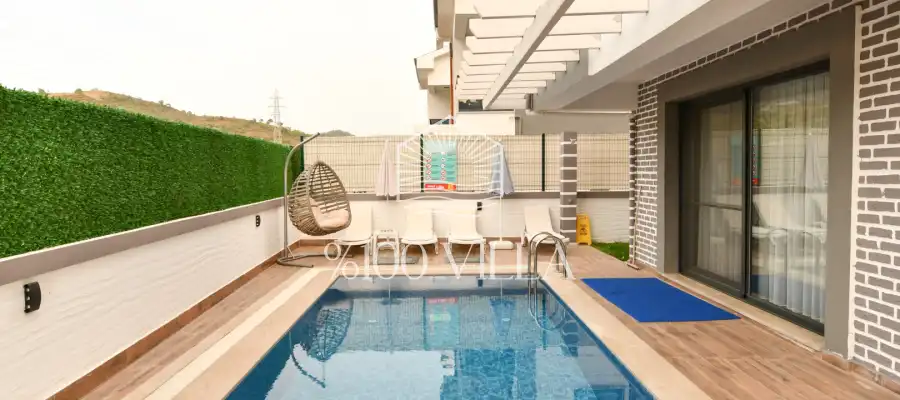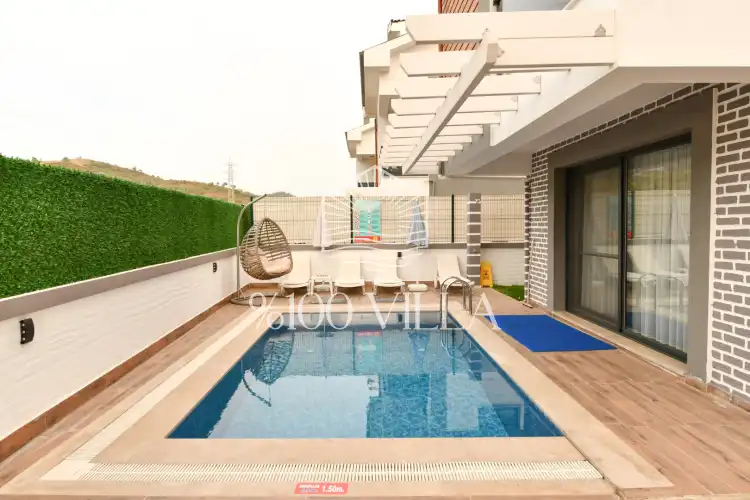 Toplam 4 yatak odasından oluşmuş, 8 kişi konaklama kapasitesine sahiptir. Geniş aileler ve kalabalık arkadaş grupları için oldukça idealdir. Oldukça şık ve modern bir şekilde döşenmiş olan villamızda misafirlerimiz için her şey düşünülmüştür. Havuz terasında bulunan şezlonglarda güneşlenebilir, bahçe masasında muhteşem yemekler yiyebilir, salıncakta sallanıp keyifli dakikalar geçirebilirsiniz