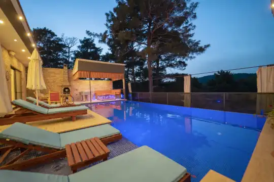 Kalkan'ın gözde Akbel bölgesinde yer alan bu eşsiz villa, doğa ile iç içe bir yaşam sunuyor. Muhteşem manzarası ve çevreyi saran yeşillikler, misafirlere huzur veren bir atmosfer sağlıyor. Modern tasarım ve konfor ön planda tutularak döşenen iç mekan, her detay düşünülerek tasarlanmıştır.