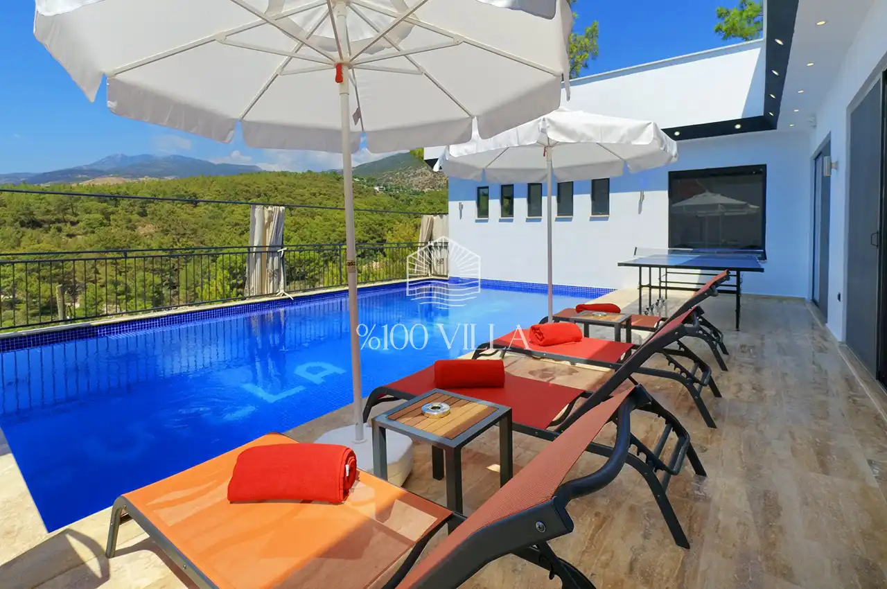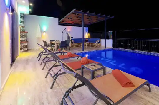 Kalkan'ın gözde Akbel bölgesinde yer alan bu eşsiz villa, doğa ile iç içe bir yaşam sunuyor. Muhteşem manzarası ve çevreyi saran yeşillikler, misafirlere huzur veren bir atmosfer sağlıyor. Modern tasarım ve konfor ön planda tutularak döşenen iç mekan, her detay düşünülerek tasarlanmıştır.