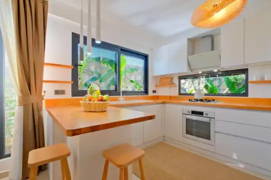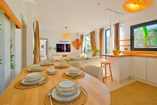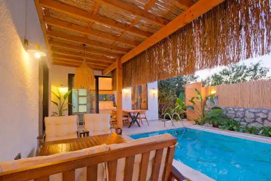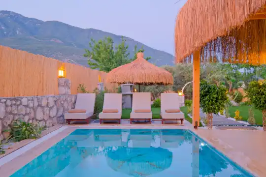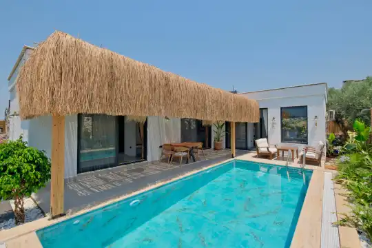 Dilerseniz huzurlu ve sakin bir atmosferde güneşin ve havuzun keyfini çıkarabilir, dilerseniz de kısa sürede merkeze ve eşsiz plajlara ulaşarak bölgenin tadını doyasıya yaşayabilirsiniz. Konfor ve keyif dolu bir tatil için bu villa, siz değerli misafirlerini ağırlamayı bekliyor.